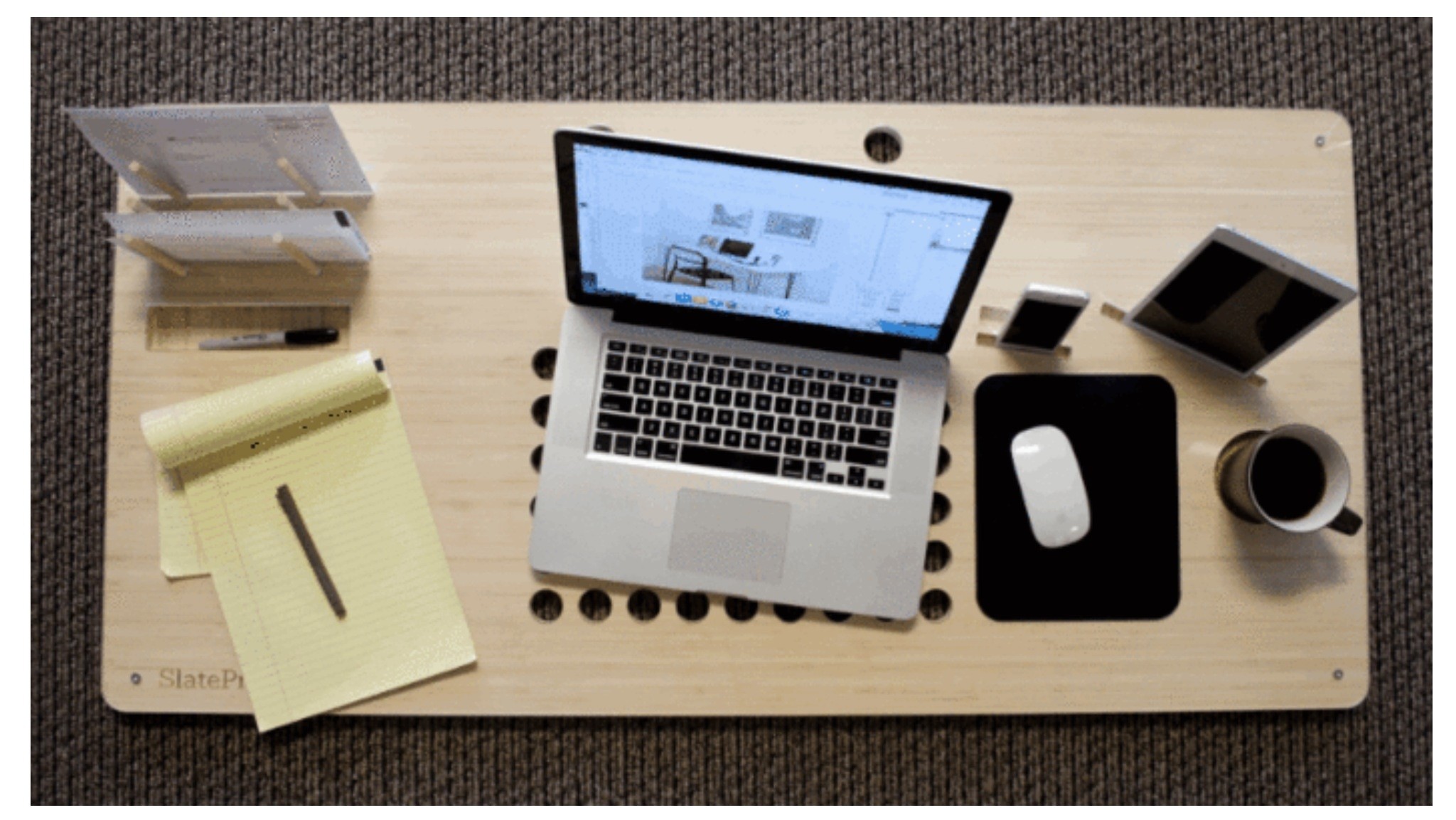 O ile stół Airdesk przeznaczony był przede wszystkim dla tych, których mózgi pracują szybciej na kanapie, o tyle SlatePro jest odpowiedni dla osób, które chcą mieć w swoim mieszkaniu także kompletny zestaw biurowy. Projektanci opisali go jako osobisty TechDesk, zaprojektowany specjalnie dla profesjonalistów, którzy pracują w domu, ale dobrze sprawdzi się również w normalnym środowisku pracy.
