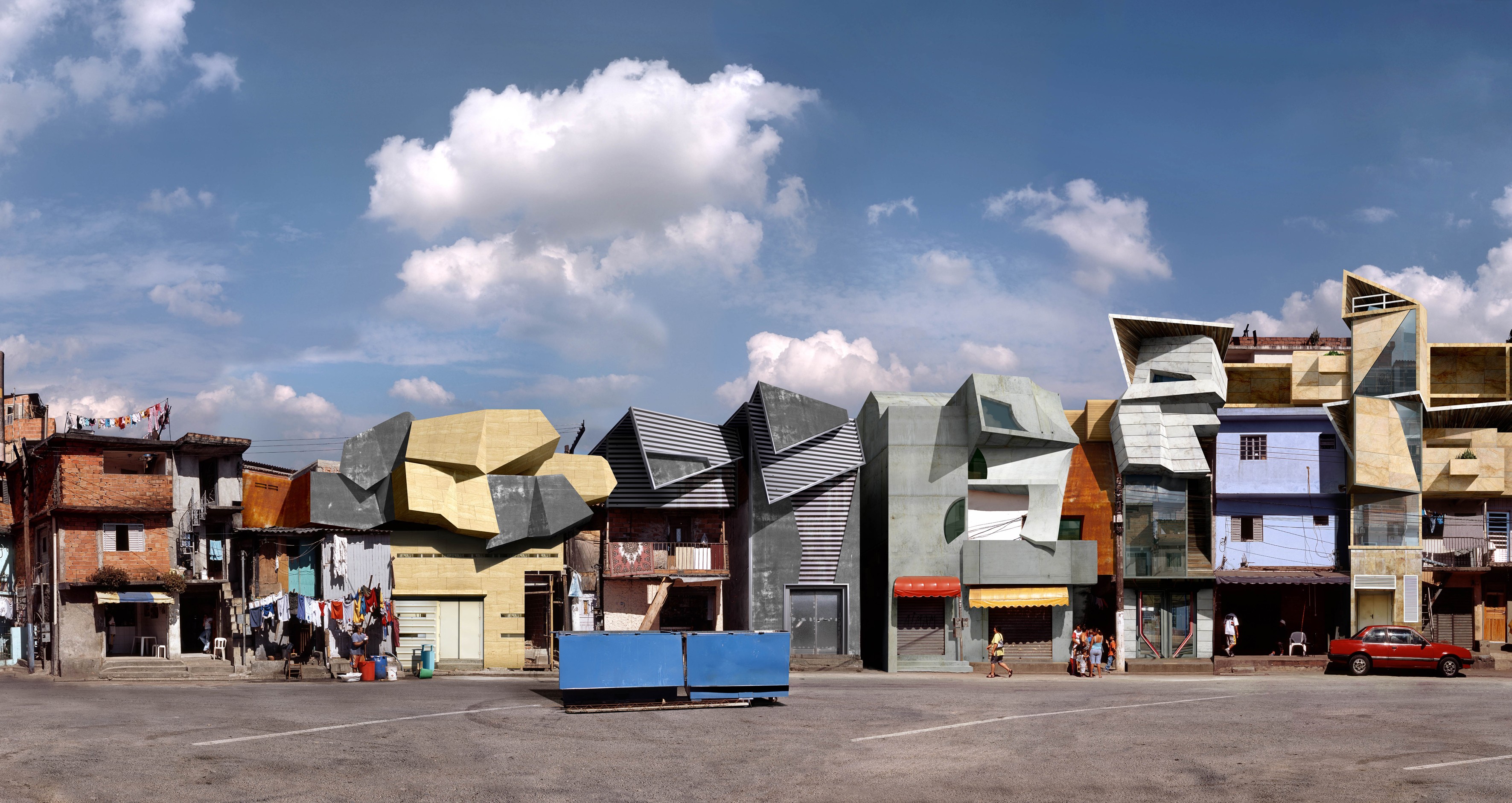 Fotografie masywnych konstrukcji hiszpańskiego artysty Dionisio Gonzáleza przynoszą fantazję o transcendentnej architekturze umieszczonej w miejskiej przestrzeni całkowitego spustoszenia, jako futurystycznej ochrony przed klęskami żywiołowymi i innymi.