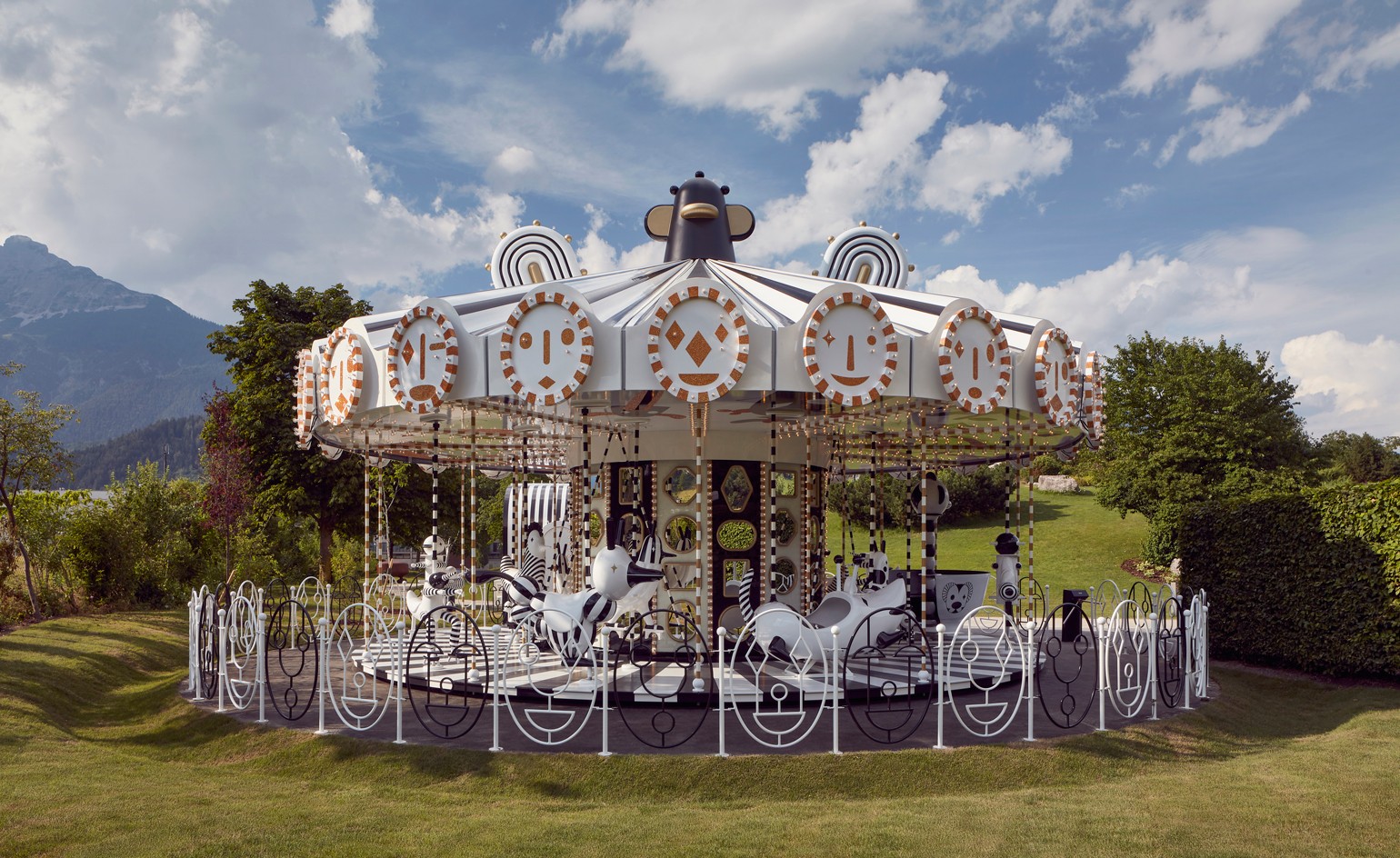 Umetnik je s svojim delom želel pričarati občutek svobode in veselja, kar mu je brez dvoma uspelo. Navdih za ustvarjanje je našel v pravljičnem svetu, temu primerno pa je vrtiljak opremil z zamišljenimi bitji, ki služijo kot siedzenia. Na strehi in ograji je mogoče opaziti še celo vrsto zabavnih obrazov, ki se lesketajo v soncu.