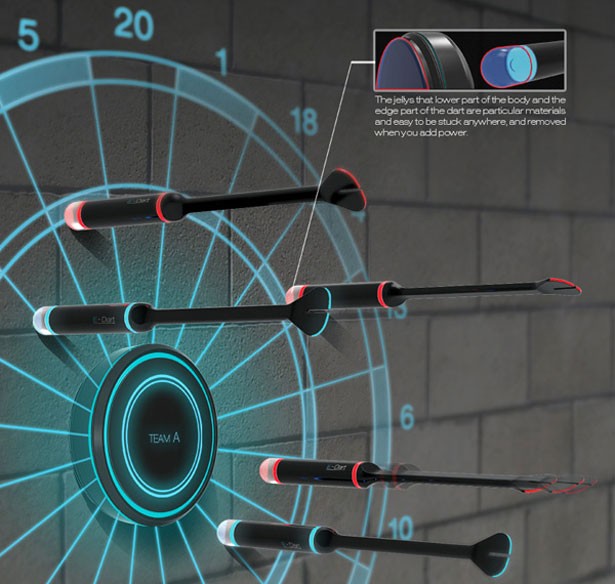 Kiedy cel dart Tarcza Tron nie jest aktywny, chodzi tylko o czarna rolka, który mocuje się do ściany (posiada specjalny klej), a po włączeniu odpala lasery we wszystkich kierunkach i tworzy standardowy wymiar. Strzały można je oznaczać w różny sposób, ponieważ mają wbudowany system kodowanie kolorami, a operacje i polecenia odbywają się za pośrednictwem planszy „matki”, gdzie między innymi wybieramy liczbę graczy lub zespoły. Strzałki nie są ani metalowe, ani plastikowe kolce, ale raczej zaokrąglone, co nie znaczy, że są nieprecyzyjne i odbijają się od powierzchni. Zostały zatopione specjalny klej, dzięki którym nieszkodliwie przylegają do niemal każdej powierzchni. Niestety na razie tylko strzałki laserowe pojęcie, ale nie jest powiedziane, że nie jest to cel na przyszłość.