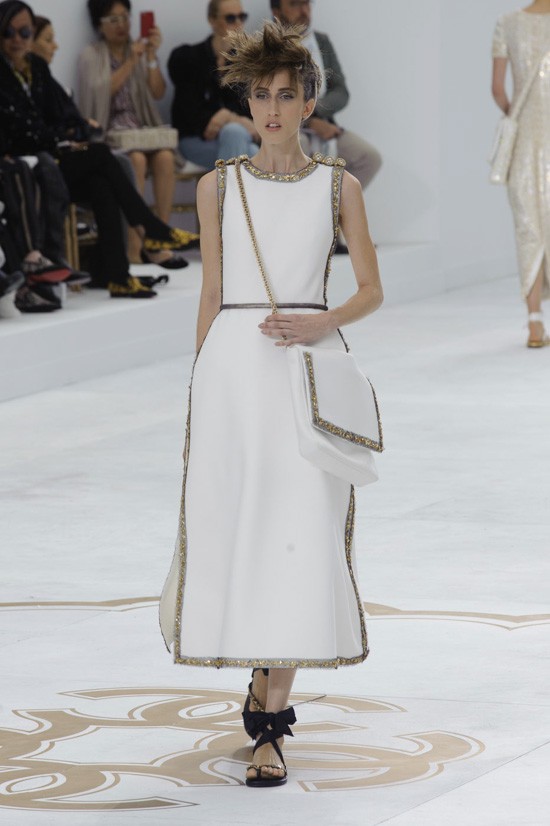 Karla Lagerfelda je inspiracijo za najnovejšo “haute couture” kolekcijo jesen-zima 2014/2015 poiskal pri znamenitem francoskem arhitektu, ki je navdihnil že mnoge – Le Corbusieru. Kolekcijo, ki jo je poimenoval “Le Corbusier gre v Versailles”, sestavljajo prestižni modni kosi, ki vsekakor odstopajo od kakršnegakoli minimalizma. Detajlirano okrašena oblačila, med katerimi seveda najdemo tudi nekaj tvidastih, navdušijo s precizno razporejenimi kristali, resami in perjem. Največ pozornosti pa so tokrat ukradli odlični nizki sandali, ki bodo naše gležnje ovili v razkošne pentlje. Čarobno!