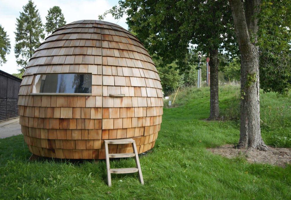 The Escape Pod lahko odigra vlogo samotnega otoka, saj boste v tej mini hišici lahko izolirani od zunanjega sveta. Bivak, ki spominja na jajce, sestavlja ogrodje iz brezove vezane plošče ter evropskega hrasta. Zunanjost je oblečena v cedrove skodle, kar videz Escape Poda rahlo približa stoječemu storžu.