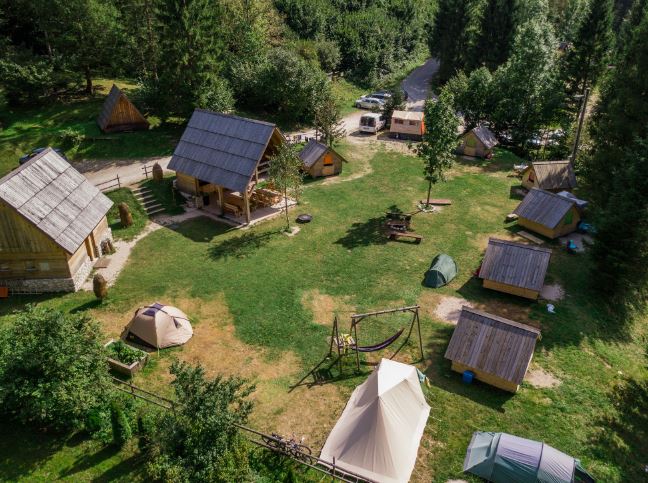 Znajduje się między Bovec a Trydentem Obóz Korita, która leży w sercu Triglavskiego Parku Narodowego, zaledwie rzut kamieniem od słynnych małych koryt rzeki Soča. Oferuje dobrze zaaranżowane miejsca do rozbicia namiotów, kilka miejsc parkingowych dla kamperów oraz wynajem dziesięciu domków glampingowych i dwóch apartamentowców. Obóz jest przeznaczony dla miłośników aktywnego wypoczynku, ponieważ oferuje doskonałą bazę wypadową do pieszych wędrówek, jazdy na rowerze itp. Ze względu na swoje położenie kemping zobowiązał się do ochrony przyrody, co docenia również wielu gości. Zadbano również o rozpieszczanie, ponieważ w obozie znajdziesz piękną drewnianą balię z ciepłą wodą.