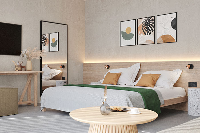 Na terenie ośrodka dostępne są wille i apartamenty. Wszystkie posiadają piękne tarasy, które pozwalają gościom na intymny kontakt z naturą i otoczeniem. Do wyboru są wille z tarasem i wanną z hydromasażem, apartamenty rodzinne i wille rodzinne. Ośrodek ma być przyjazny dzieciom, więc najmłodsi mogą również korzystać z aquaparku z trzema basenami oraz wieloma zjeżdżalniami i atrakcjami. Mają też ekologiczne place zabaw i place zabaw, a także wiele zajęć sportowych. Zwierzęta futrzane są również mile widziane i otrzymują po przyjeździe przekąskę, zabawkę i miskę.