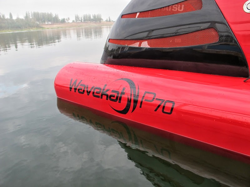 Vodni čoln Wavekat P70 prinaša avtomobilsko dirkaško izkušnjo na vodo in daje nove dimenzije vodnim vragolijam. Vključno z drsenjem (”driftanju”). Pa še gum pri tem ne boste obrabili. Ta ladijski trup s fiziognomijo katamarana pa se ne obrabi kar tako. Sicer pa tovrstna konstrukcija omogoča 90-stopinjske zavoje brez izgube delčka hitrosti. Najvišja znaša 35 vozlov (65 km/h).