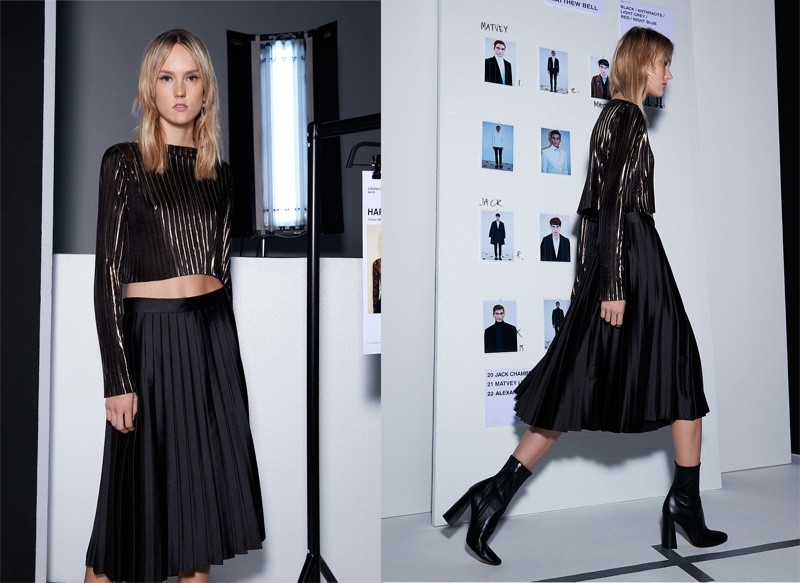 Zara v prefinjeni praznični kolekciji ponuja vse od plisiranih kril srednje dolžine in izvezenih bomber jaken do čipkastih oblek in peplum topov, popolne “party” stajlinge pa zaokroži s čevlji z debelimi podplati, žametnimi salonarji in usnjenimi gležnjarji.