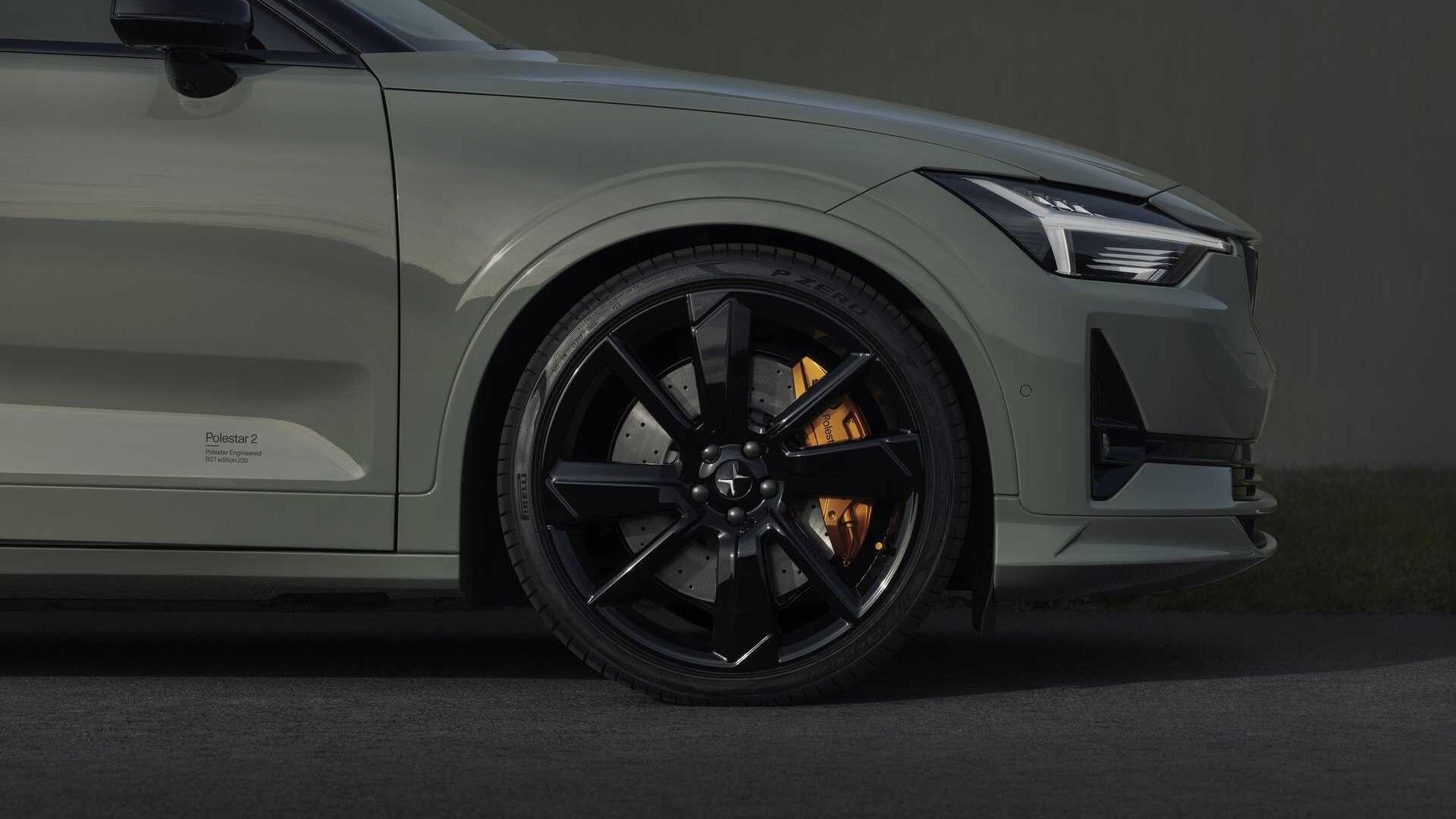 Polestar 2 BST edition 230 ima enako nadgrajeno podvozje in k zmogljivosti usmerjene oblikovne podrobnosti kot njegov predhodnik, vključno z nižjo višino vožnje za 25 milimetrov, dvosmerno nastavljivimi blažilniki Öhlins, sprednjim drogom, 20-odstotnimi tršimi vzmetmi in edinstvenimi 21-colskimi litimi platišči. Črna diamantno brušena platišča so ovita v posebej razvite pnevmatike za visoko zmogljive avtomobile 245/35R21 Pirelli P Zero, kar zagotavlja odličen oprijem ceste in vodljivost.