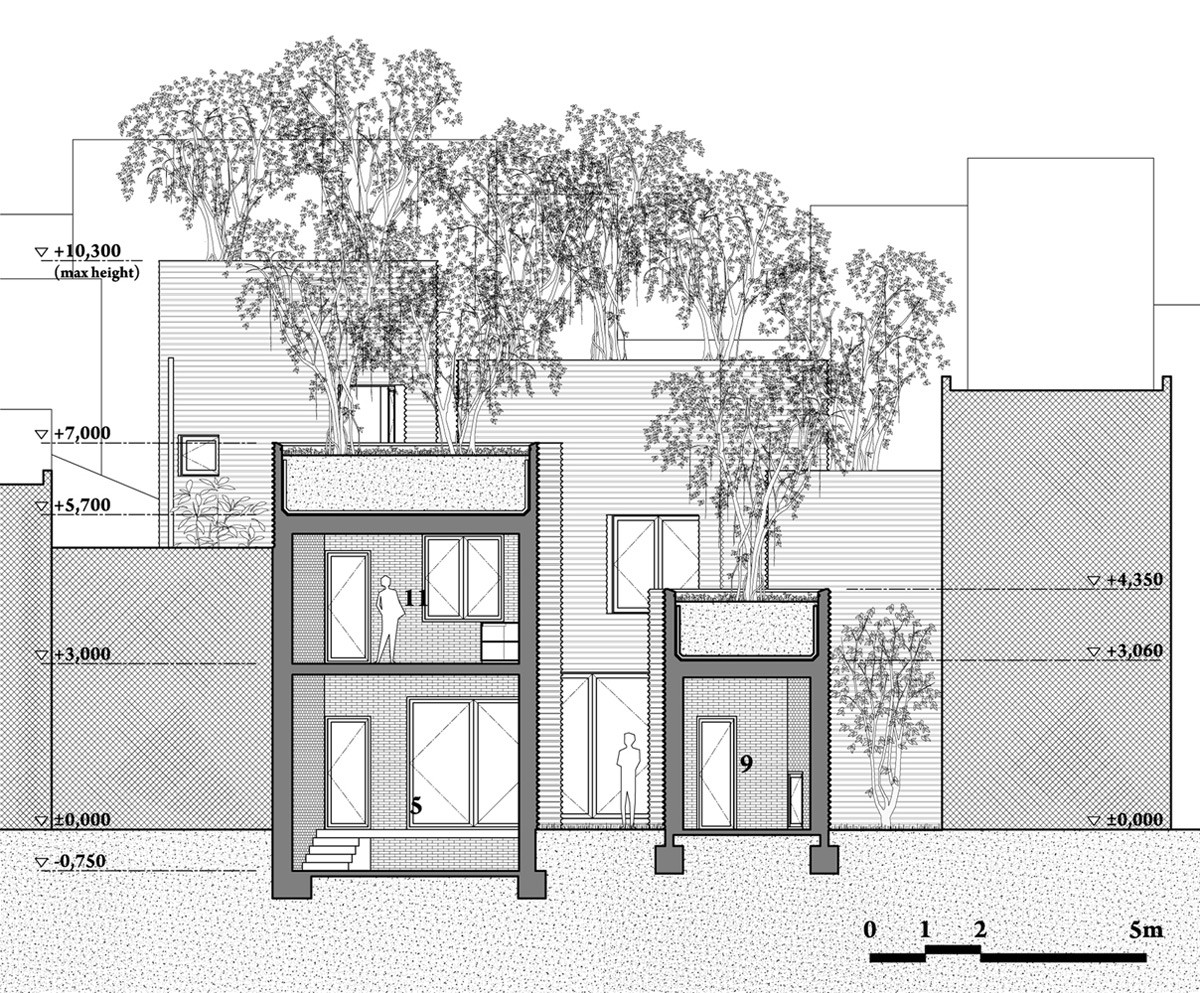 Kot odgovor na skoraj popolno urbanizacijo vietnamskih mest so Vo Trong Nghia arhitekti zasnovali sosesko zgradb, ki so jih zaradi ozelenjenih streh poimenovali kar "hiše za drevesa".