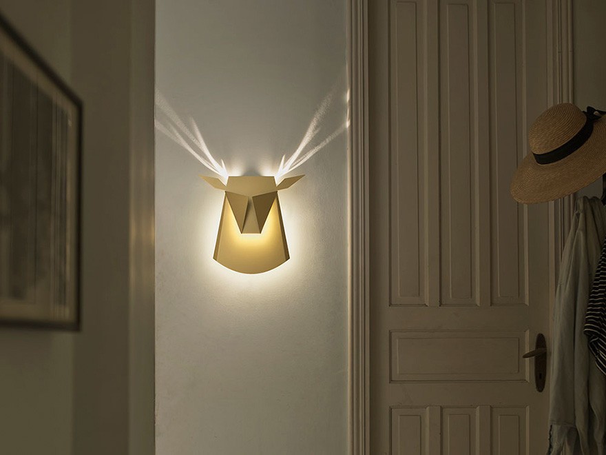Minimalistično zasnovane se igrajo s svetlobo in ob prižigu luči na tak način osvetlijo ozadje, da se v kombinaciji s samo svetilko spremenijo v žival. Na voljo sta motiva jelenje glave in pava, Bikovska pa je idejo zanje dobila v pop-up knjigah, ki so jo vedno fascinirale kot otroka. Na voljo je različica iz kartona, ki vas bo olajšala za 60 evrov, različica iz aluminija pa za 235 evrov.