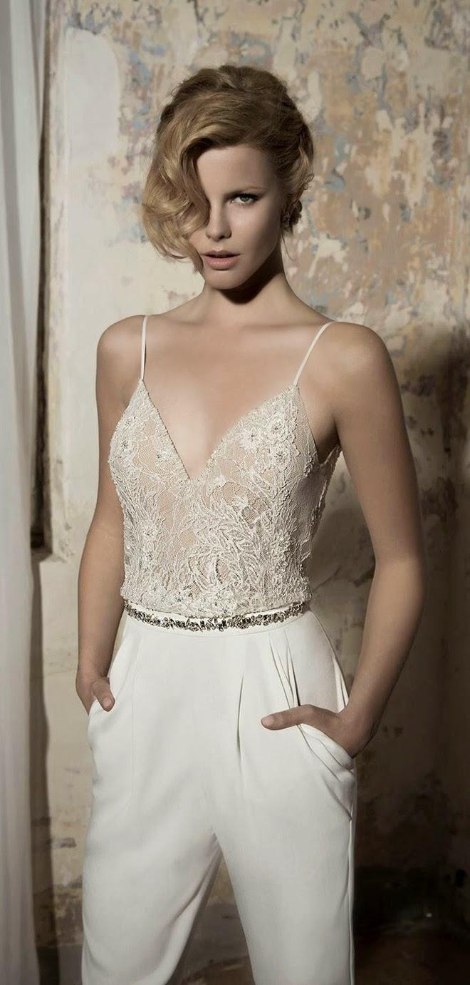 Nevesta včasih potrebuje le običajen, dobro krojen hlačni kostim, da postane sodobna gizdalinka.