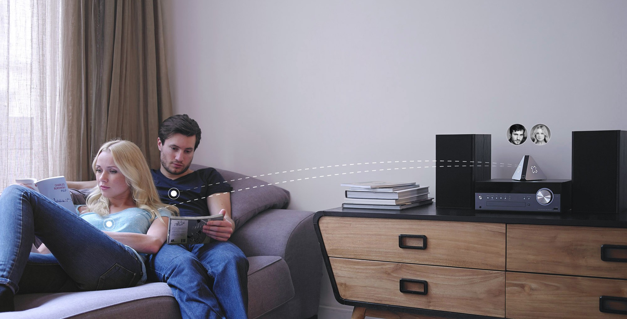 Z glasbenim predvajalnikom Prizm potreba po prenosniku, pametnem telefonu in tablici postane odveč. Ni vam več treba brskati po spletu in tuhtati, kaj želite poslušati. Prizm to delo opravi namesto vas. Pri tem se poslužuje spletnih knjižnic glasbe, z zvočnikom pa se poveže prek kabla (3,5mm vhod), optike ali brezžične povezave Bluetooth. Ljudi v prostoru zazna prek pametnih telefonov, pametnih ur in zapestnic, ambientalno atmosfero v prostoru pa določi glede na del dneva, uro in jakost zvoka.