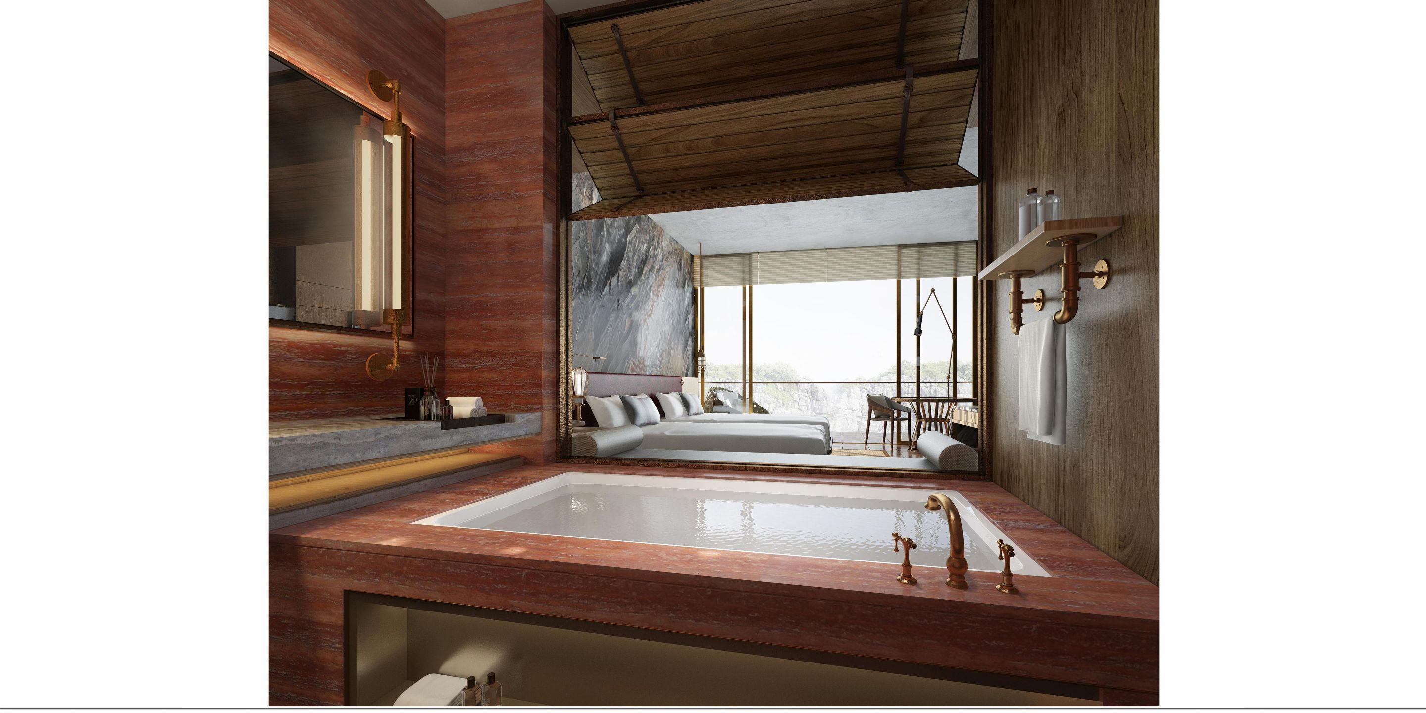 Kamnolom je oblikovalcem priskrbel odličen prostor za izgradnjo hotela. V želji, da zgradijo še nekaj dodatnih etaž in umetno jezero, so nadaljevali s kopanjem. Najvišje nadstropje hotela se nahaja v pritličju, medtem ko kar 16 nadstropij najdemo pod tlemi.