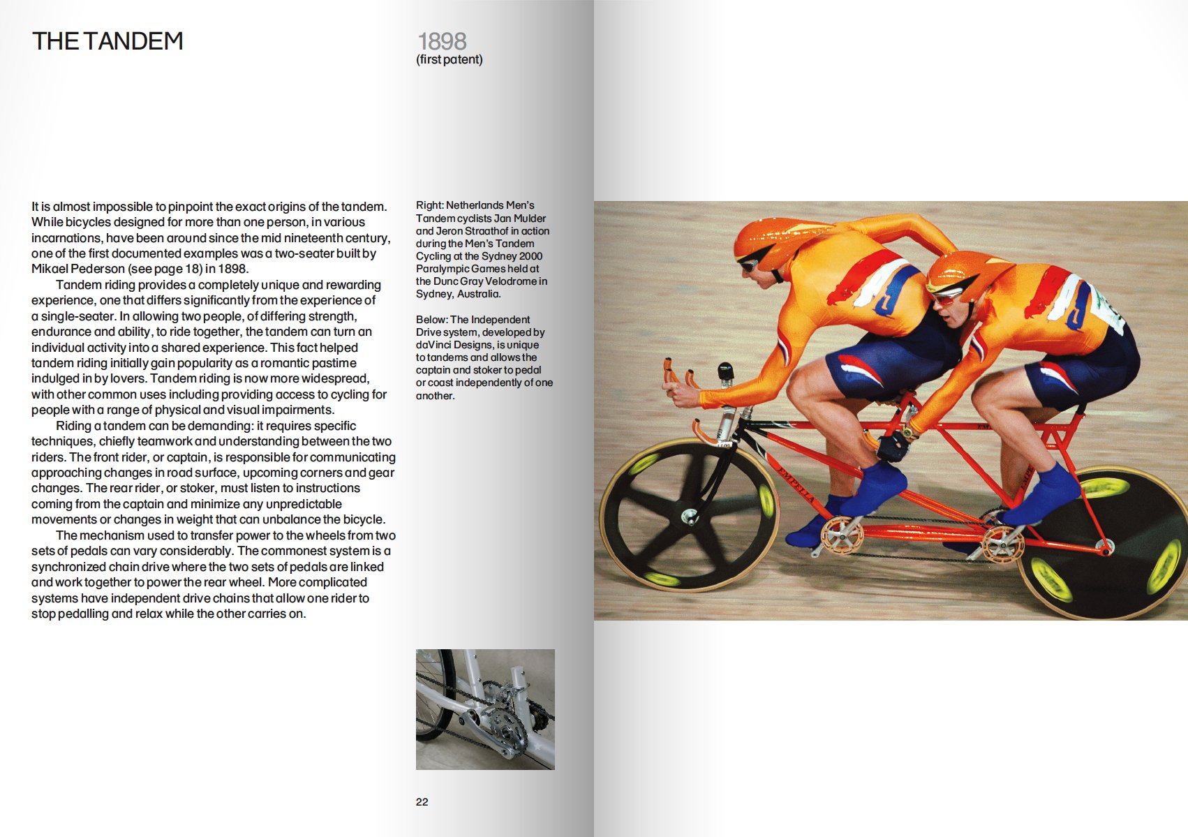 O London Design Museum publicou recentemente um livro dedicado à bicicleta. Desde seus primórdios, no final do século XIX, a bicicleta mudou minimamente em sua essência em termos de forma, mas experimentou inovação em materiais e melhorias estéticas. Um livro é uma obra Alex Newson, um entusiasta do ciclismo que também é o atual curador do London Design Museum. Livro oferece uma visão cronológica de todos os tipos de bicicletas - desde Um centavo com uma roda dianteira maior que a traseira (hoje os artistas andam de motos semelhantes em alguns shows) e até o lendário aerodinâmico Cinelli Laser.
