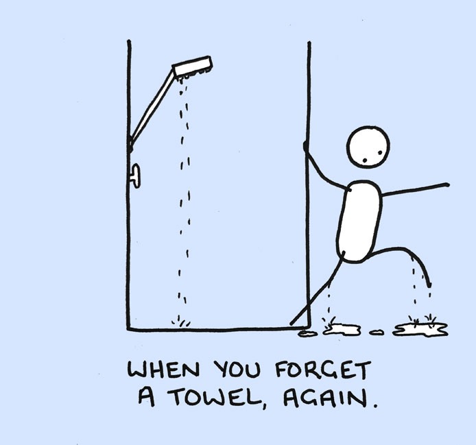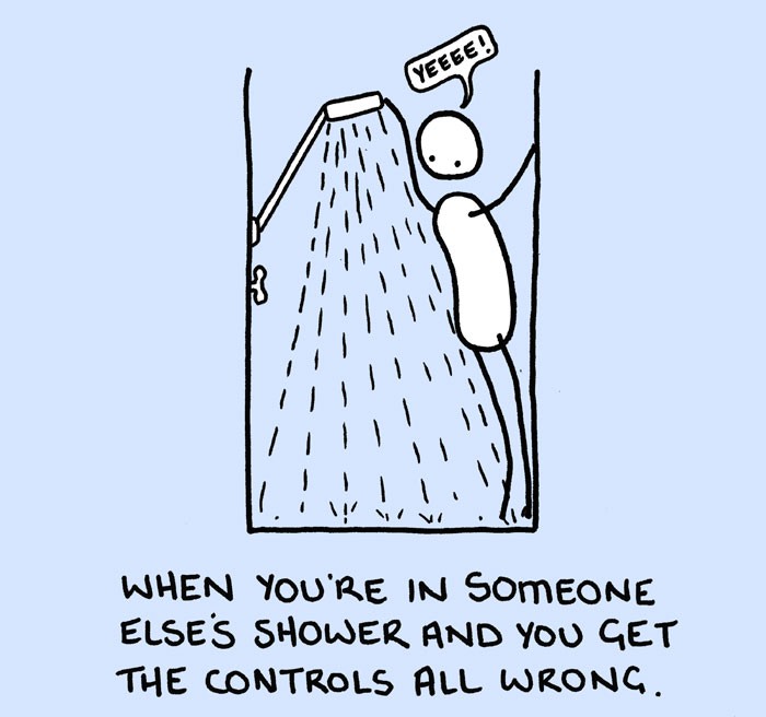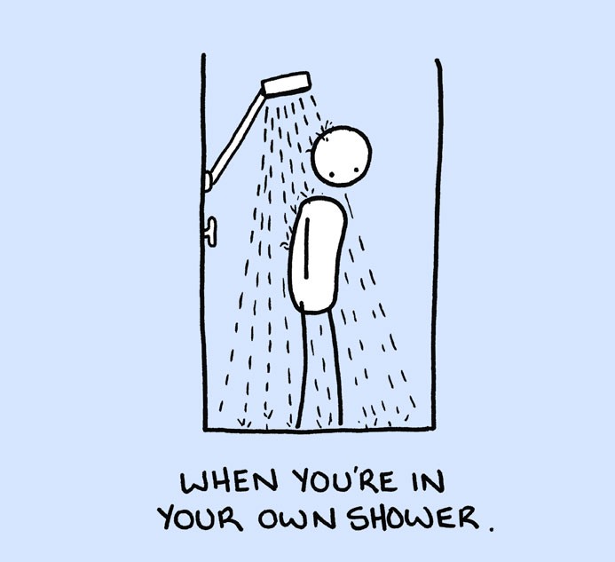 Mas para outros são azulejos, água, torneira e cabine estreita são objetos de inspiração, pois é durante o banho que acontecem as coisas mais interessantes. E isso também é captado pelo designer nas ilustrações Chaz Hutton. suas experiências no chuveiro ele resumiu em uma história em quadrinhos e provou para nós que todos nós fazemos as mesmas coisas no chuveiro, quer queiramos ou não.