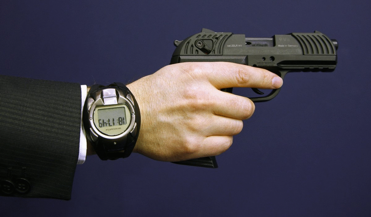 Esta não é uma arma futurista que dispara ou localiza um alvo de forma independente. No entanto, ele ficará inutilizável se cair em mãos erradas. A Armtix iP1 é uma pistola calibre .22 que funciona com o relógio de pulso iW1 incluído.