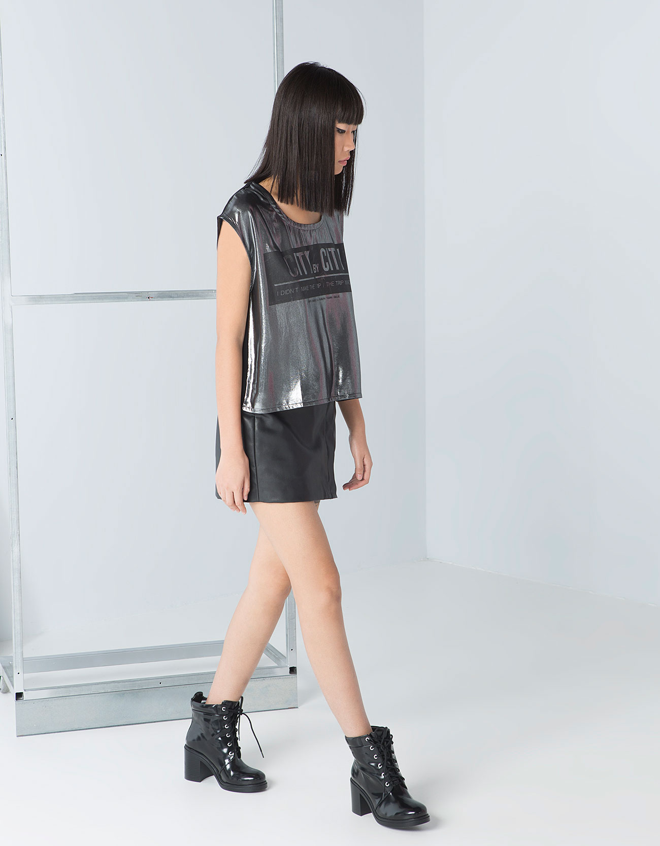 Depois de definirmos com que finalidade nos vestiremos, podemos começar a escolher a parte superior. Via de regra, é uma escolha estética e estilisticamente segura quando combinada de acordo com o princípio tight-wide. Então, se a saia for larga, opte por um top estreito e vice-versa. Para ocasiões casuais, combine a peça preferida deste ano com uma t-shirt de algodão, que pode ser enfiada na cintura da saia com uma malha fina ou larga e volumosa. Para ocasiões mais finas, brindamo-lo com a companhia de um top ou blusa fino, ou ainda de malhas estreitas e justas com gola alta. Não é complicado, não é?