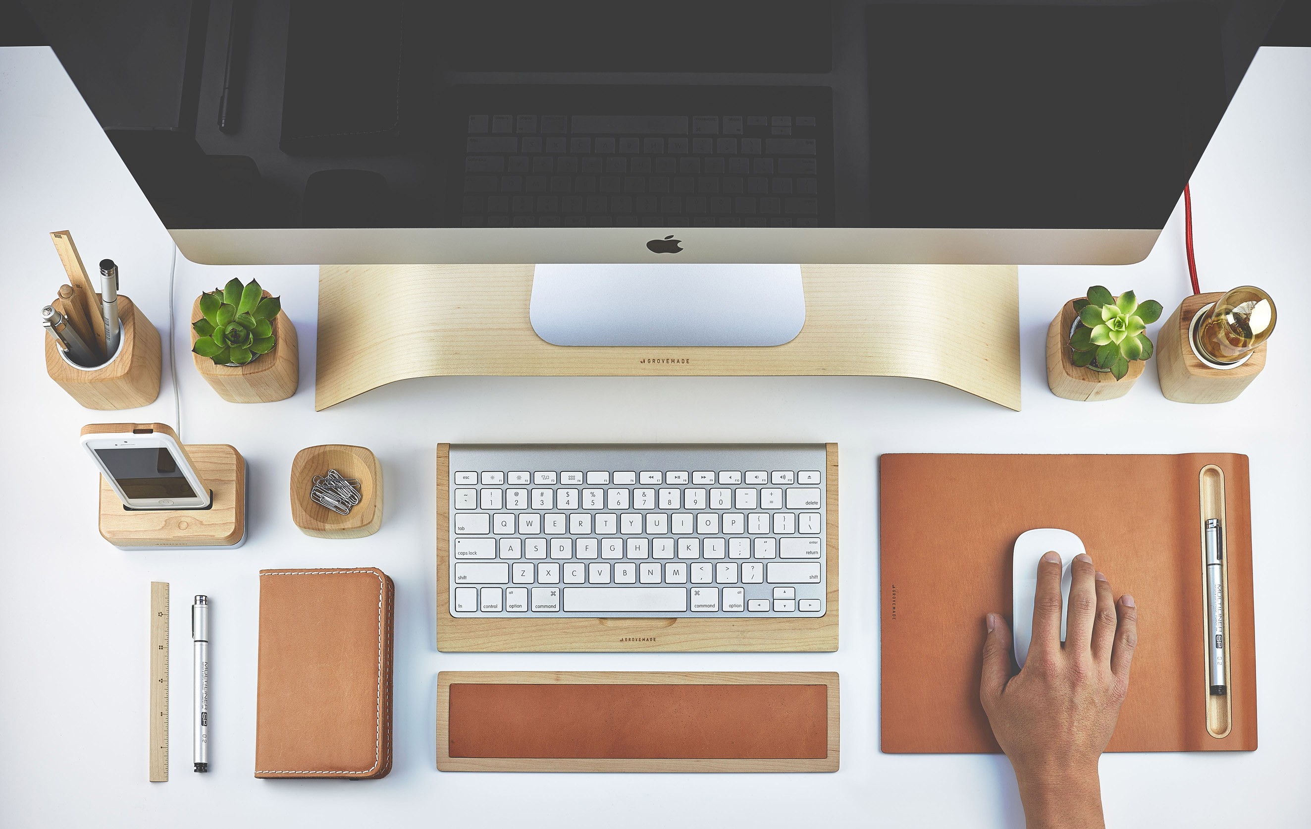 Hoje em dia, toda mesa está repleta de itens comuns, como monitor de computador, teclado, mouse, luminária, porta-canetas e vaso de flores. Com tantos objetos, nossa mesa pode ficar rapidamente desorganizada, e a maneira mais fácil de resolver esse problema é com uma nova coleção de acessórios para mesa. Grovemade.