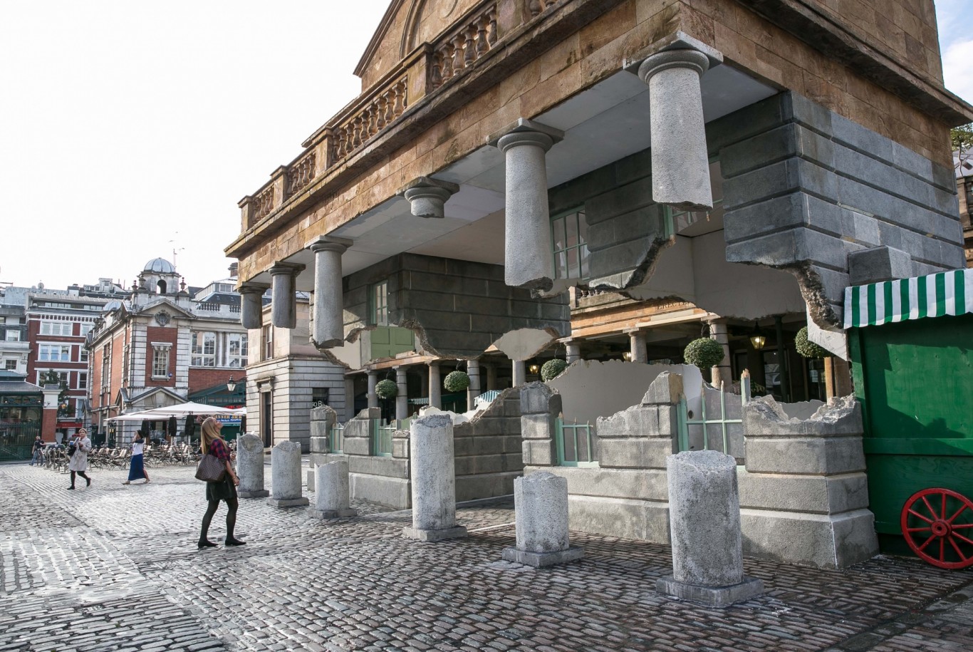 Edifício flutuante isso funciona mais de 100 funcionários artista e designer Alex Chinneck, que construiu uma réplica flutuante do edifício do mercado de 184 anos. feito de poliestireno leveO artista britânico interveio no espaço público de forma incrivelmente eficaz, integrando perfeitamente a ilusão artística ao ambiente urbano. O edifício flutuante, com 10 metros de altura e 12 metros de largura, é, portanto, um exemplo disso. elegantemente infiltrada na aparência de uma famosa praça londrinaE os transeuntes podem caminhar livremente sob o edifício flutuante (é claro que todos ficam entusiasmados, por causa da construção arquitetônica). não revela um único apoio, o que poderia fazer o prédio flutuar no ar).
