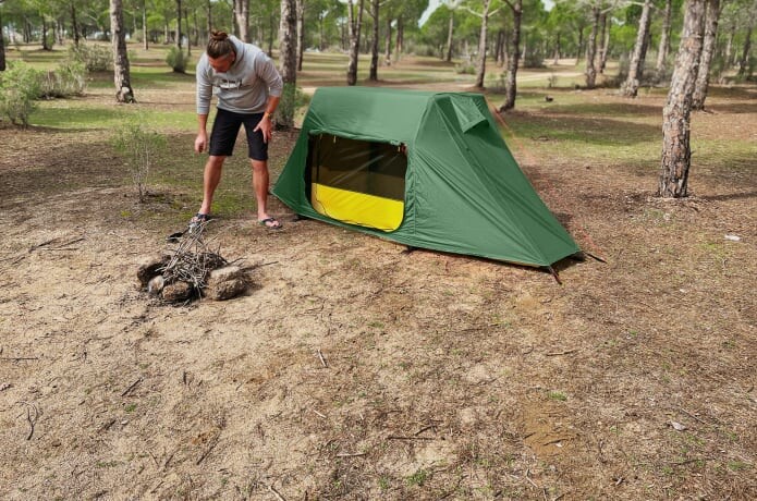 Se você não quer estar na água, a barraca permite que você que seu SUP use em cima do seu carro ou até em cima de pedras (se quiser), com sua prancha embaixo de você como uma espécie de almofada. A tenda é extremamente pequena para viagens e é feita de malha de poliéster leve com uma cobertura de ripas de 40D ripstop de poliamida dupla revestida com silicone. O piso impermeável da barraca é feito de Tecidos de poliéster Oxford 150D.