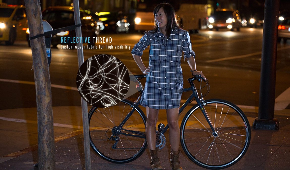 Čeprav zdrava in okolju bolj prijazna opcija, je vožnja s kolesom lahko polna nevarnosti. Kolesarji so toliko bolj ogroženi ponoči, saj se marsikdo na račun modnega stila raje odpove varnostnim oblačilom, reflektivnim nalepkam in nočnim lučkam. Da bi ostali modni a hkrati varni, je podjetje Betabrand iz ameriškega San Francisca na trg poslalo srajco s posebno funkcijo: karirasta srajca, ki je čez dan nevpadljiva, zasije šele ponoči, saj so v črtah vtkane 3M retroreflektivne niti, ki se svetijo in tako povečajo vidnost in varnost nositelja. Ni baterij, ni elektrike, vklopiti morate le pamet in jo obleči!