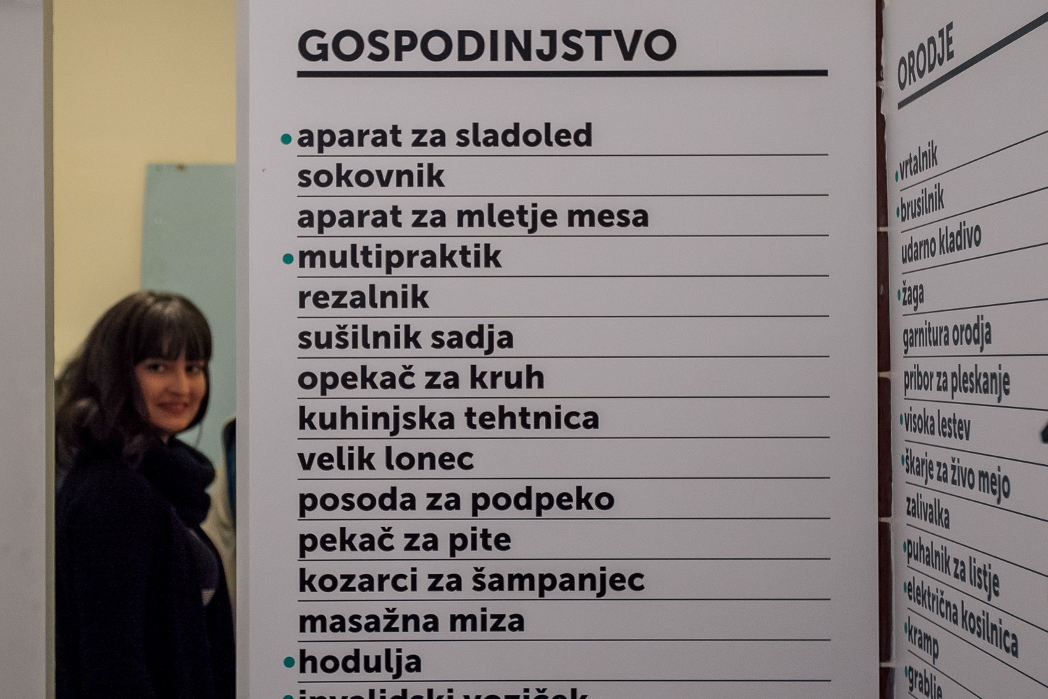 casa comunitária em Savska naselje em Ljubljana está extremamente animado desde quarta-feira, 21 de janeiro, pois agora é o lar do primeiro biblioteca PALAVRAS conosco, em que podemos emprestar uma grande variedade de coisas, de patins de gelo e luvas de boxe para máquina de costura ou vestidos de noiva. Para aqueles de nós que não podem pagar nada durante a crise, este é um conceito interessante, inovador e um tanto bem-vindo.