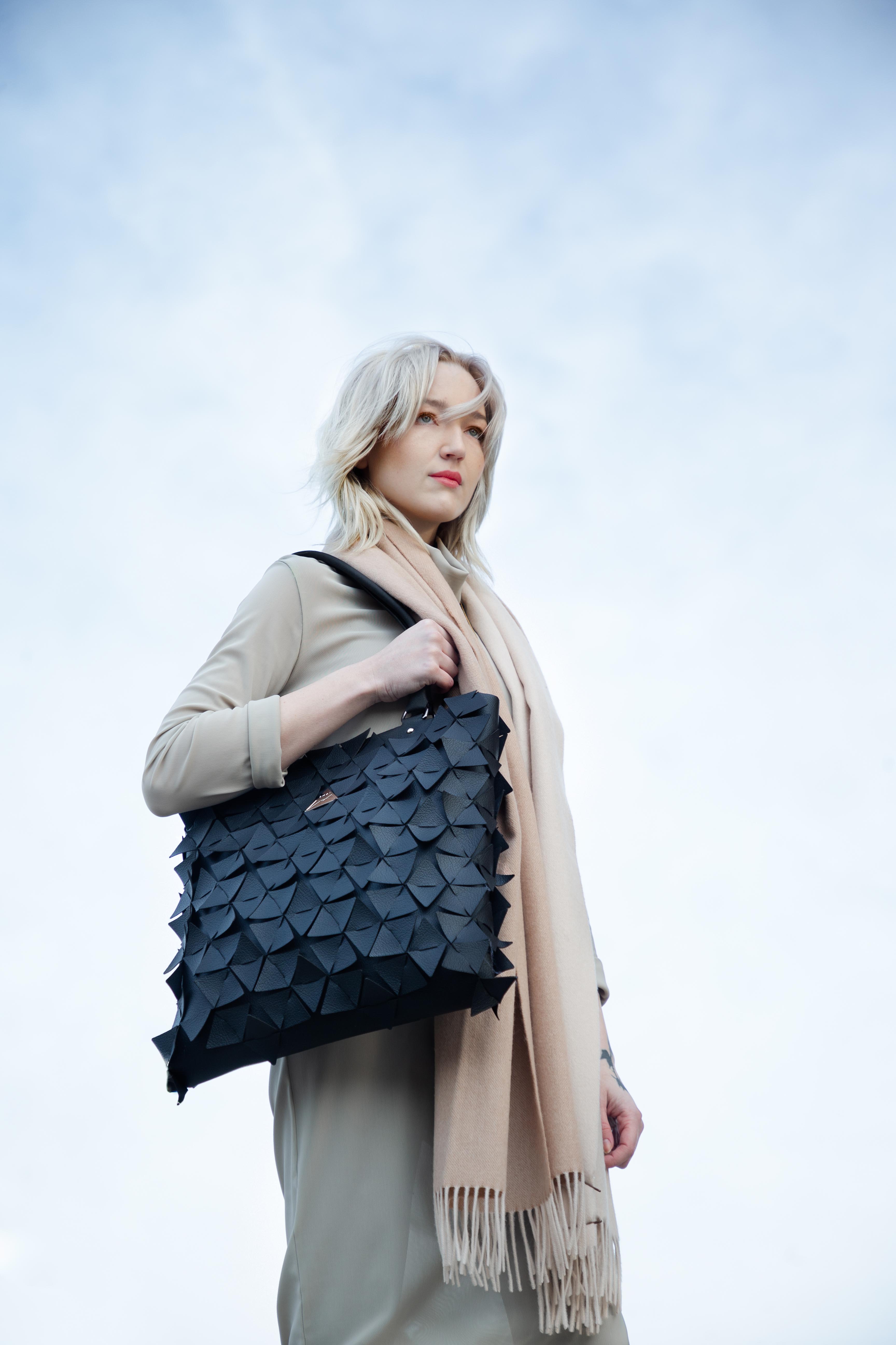 Embora a textura 3D única das bolsas DRAGÃO assemelha-se à pele de dragão, mas nenhuma criatura viva foi ferida na sua fabricação! Eles a usam para fazer bolsas couro vegano de alta qualidadeA textura característica de "dragão" das bolsas é o resultado do processo de fabricação inovador da Nelina - artesanato digital, única no mundo das bolsas. A produção combina modelagem computacional, corte a laser e montagem manual.