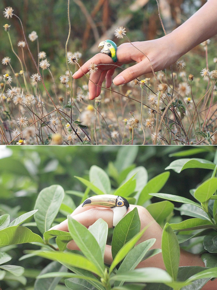Anéis de animais São joias originais, úteis e extremamente fofas para todos os amantes dos animais. Eles são feitos e vendidos em uma loja tailandesa Bom depois das nove, fundada por Chawanunt Thongpool e Tidarin Srisook, e você também pode encomendá-los online, nomeadamente na loja online Etsy, um refúgio para artesãos e seus amantes.