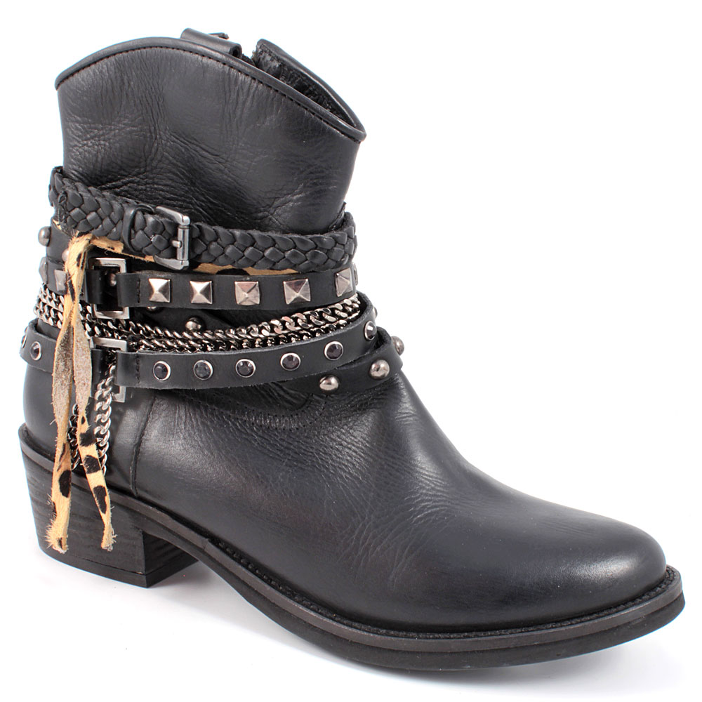 Couro em preto e em todas as tonalidades possíveis de marrom, eles são nobremente usados nos pés, e chamam a atenção com cristais ou rebites de metal adornando o calçado. Além das botas de cano alto, a linha tem muito botins de cowboy e motociclista, robusta, com salto largo e baixo. Tiras de couro decorativas, clipes e rebites são apenas os toques finais para um visual verdadeiramente moderno.