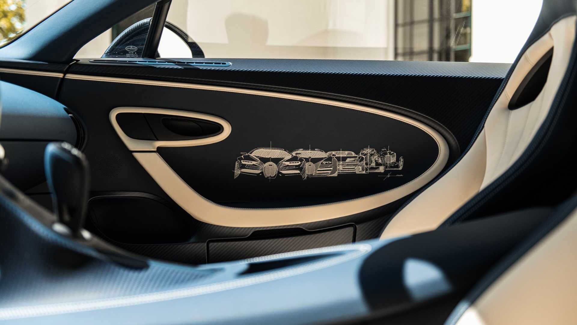 O interior oferece uma combinação de bege sedoso e azul lago. Nos encostos de cabeça podemos ver novamente a inscrição L'Ébé, e nos forros das portas as silhuetas de importantes modelos da Bugatti, como o Chiron, Veyron, EB110 e outros. Além das mudanças de estilo, mecanicamente, o Bugatti Chiron permanece o mesmo e ainda o alimenta. Motor de 8,0 litros W de 16 cilindros com o que 1.503 cavalos de potência. Atualmente, a Bugatti está finalizando a produção do Chiron, que será substituído por um novo modelo. Eles farão mais antes disso 10 cópias do modelo Centodieci, e cada um deles custará tanto quanto 8 milhões de euros.
