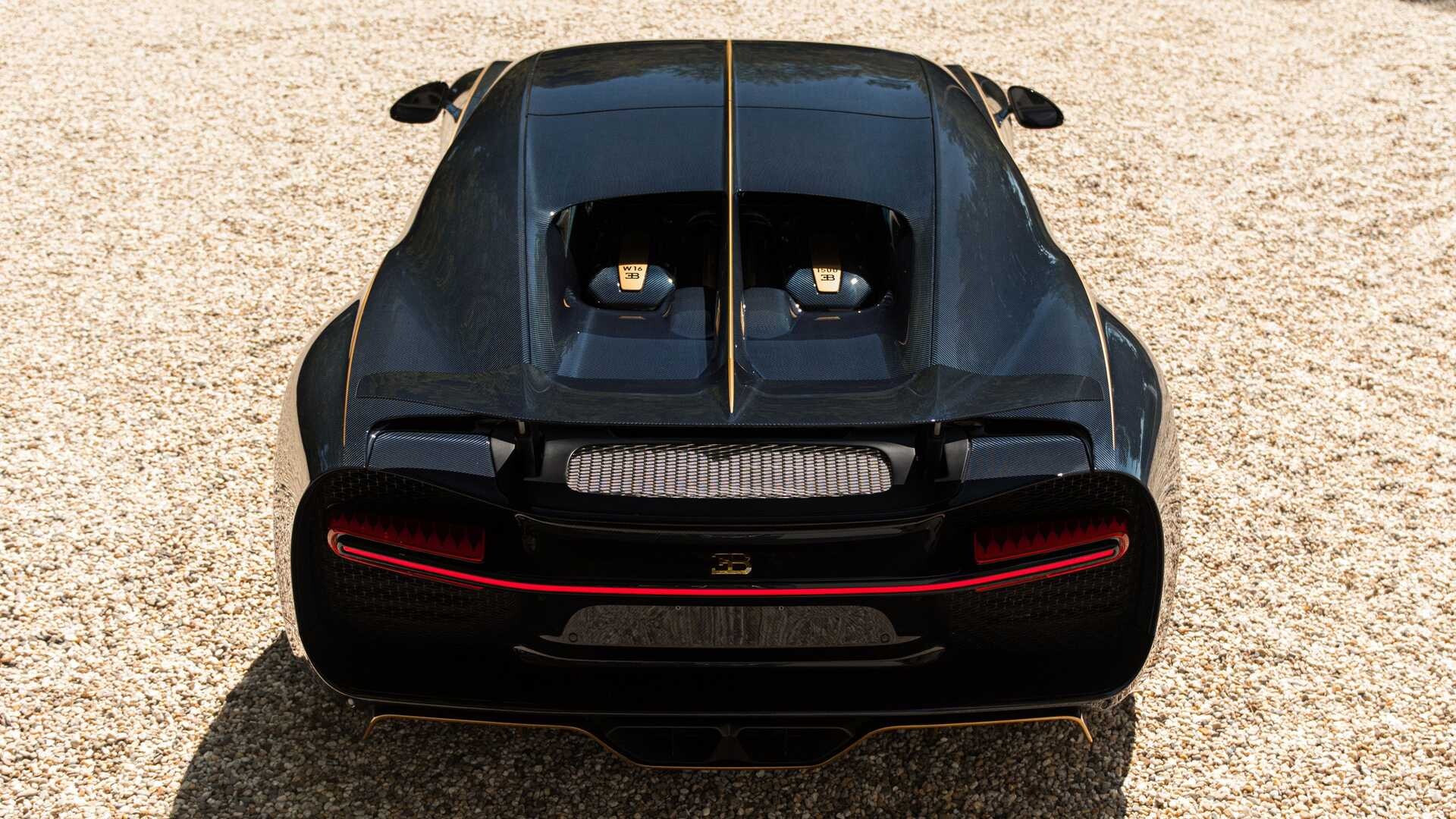 Bugatti Chiron L'Ébé Edition apresentar três exemplares da edição especial do modelo Chiron. Um deles é o Chiron e os outros dois são o Chiron Sport. A edição especial leva o nome da filha do fundador da empresa Bugatti e é acompanhada por elementos de design Art-Deco. O exterior dos três carros especiais apresenta carroceria de fibra de carbono azul exposta e elementos de design dourados contrastantes. Apenas estes são perceptíveis na grade frontal, faixas centrais e laterais, no defletor de ar traseiro, logotipos EB, aros e parcialmente no capô. letras douradas L'Ébé está localizado na "asa" traseira e nas soleiras das portas do carro.