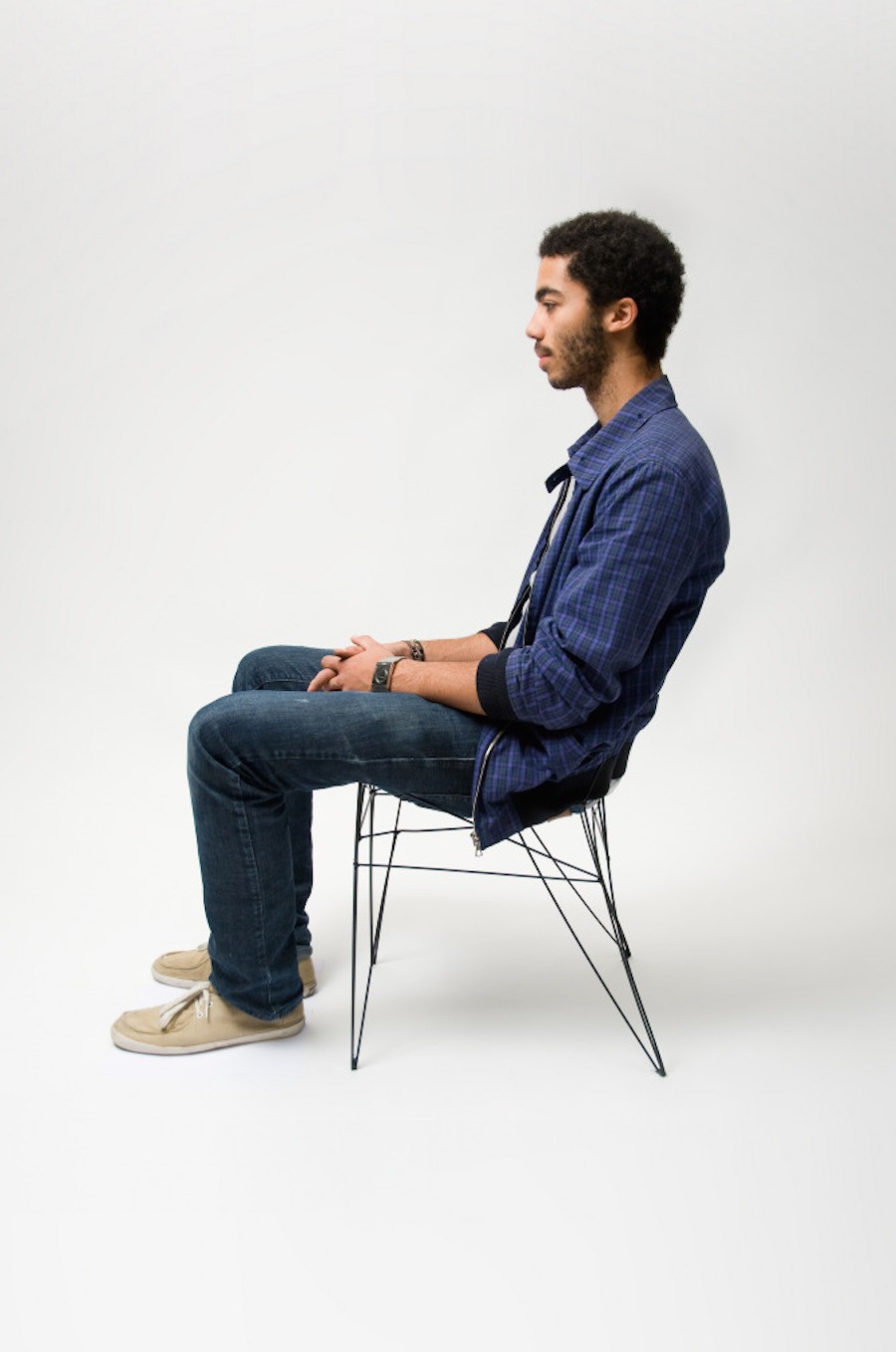 cadeira de metal ligueira (está disponível em várias cores e tamanhos) lembra mais uma figura geométrica ou estudo, mas na realidade é completamente cadeira útil e também confortável.