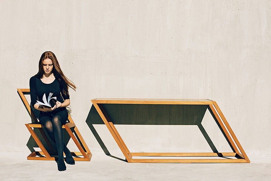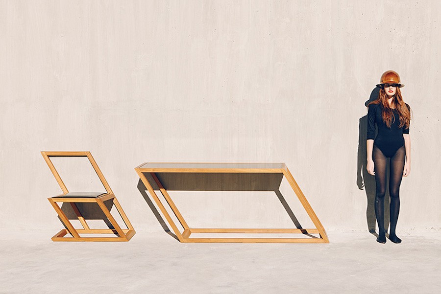 Você é perfeccionista? Você se incomoda se a foto ficar pendurada de lado? Então desvie o olhar! O estúdio de móveis XYZ Integrated Architecture preparou a coleção de móveis da série 60, uma série de cadeiras e mesas inclinadas que, apesar do formato incomum, são totalmente funcionais.