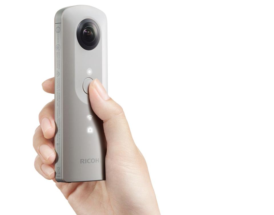 A versão mais recente da câmera portátil de 360 graus da Ricoh é uma versão menor e mais barata da câmera Theta S, que permite capturar fotos e vídeos esféricos com apenas um toque no botão do obturador e compartilhar facilmente conteúdo em redes sociais via Wi-Fi. .