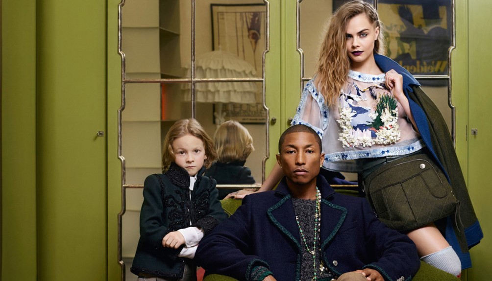 A supermodelo Cara Delevingne, o rapper Pharrell Williams e Hudson Kroenig, de 6 anos, são os rostos da nova coleção Paris-Salzburg pré-outono/inverno 2015 da icônica casa de moda Chanel. Embora o verão esteja apenas começando, Chanel já está nos seduzindo para o outono chique e elegante com suas peças.