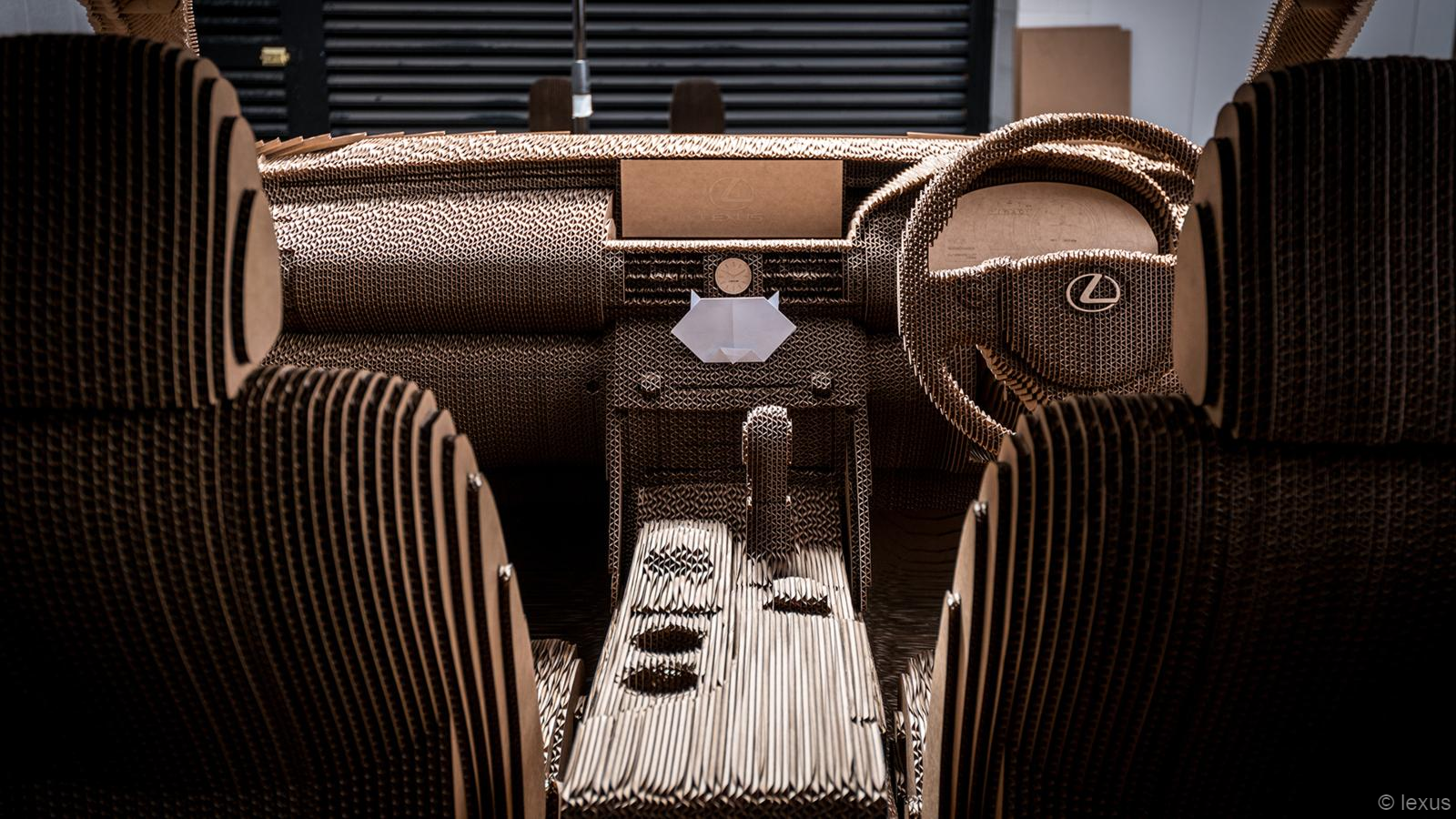 O design do carro de origami é imagem espelhada do modelo IS Lexus original, e os japoneses se uniram à empresa londrina LaserCut Works e Scales and Models em sua produção. O carro está totalmente equipado, tem portas funcionais, faróis funcionais e rodas giratórias, graças ao motor elétrico, que é montado sobre uma estrutura de aço e alumínio, e também acionável. E como eles conseguiram? Primeiro, eles receberam um modelo 3D do IS, que depois desmontaram em peças essenciais, como carroceria, painel, assentos e rodas. Eles eram então renderizado digitalmente em “fatias” de 10 mm, criando os perfis bidimensionais necessários para cortar a laser cada uma das 1.700 folhas de papelão. Eles usaram cavala para manter tudo junto cola para madeira à base de água, e eles precisavam fazer isso três meses. Você teria isso?