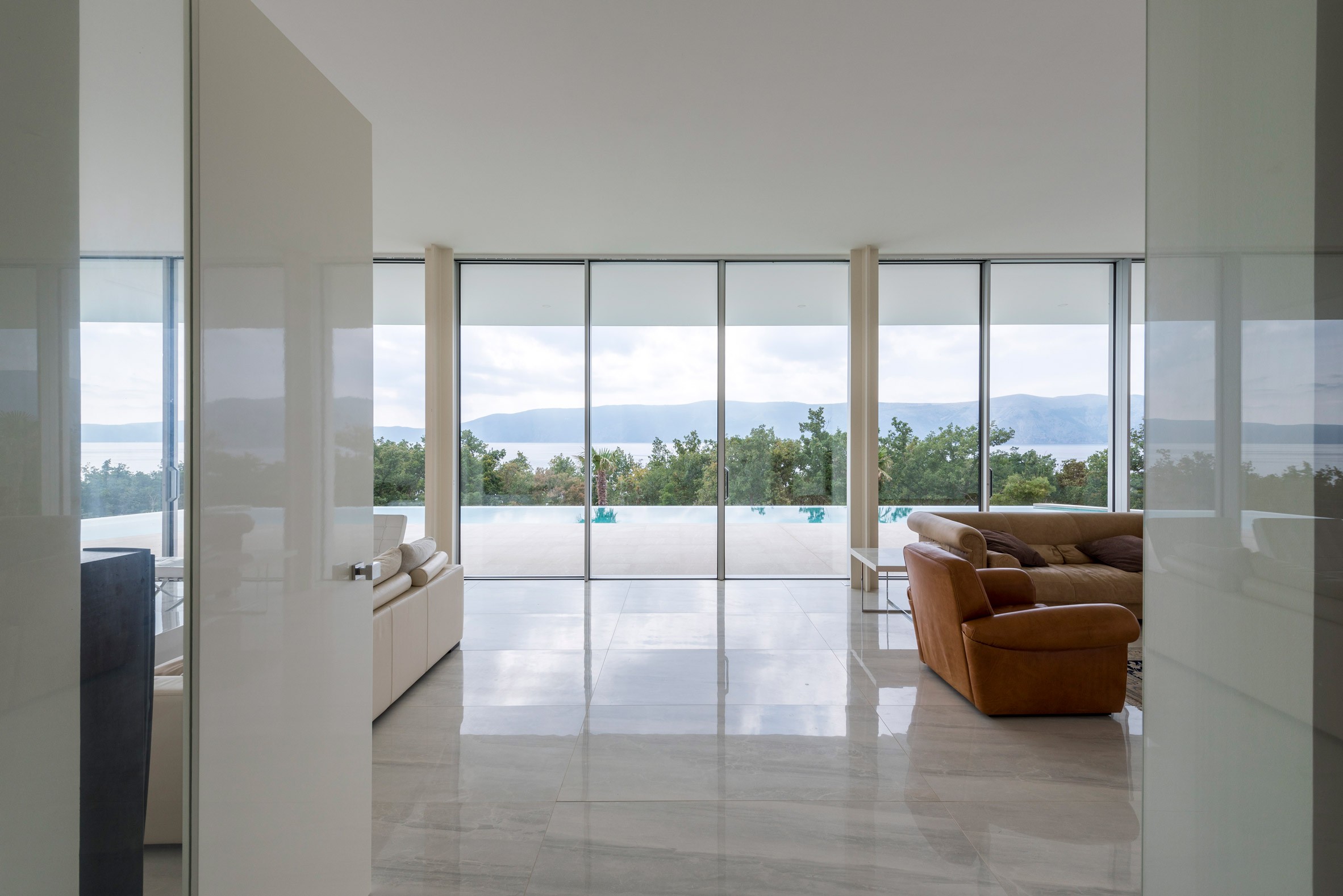 O layout divide-o em "parte privada e parte pública", mas entretanto oferece excelentes vista do mar Adriático e complementa o ambiente. A parte "pública" situa-se no lado nascente do terreno e tem uma grande sala de estar aberta, sala de jantar, que se abre para amplo terraço e piscina. Parte "privada", onde também são dois quartos, cada um com sua própria entrada, é ligeiramente elevado e afastado da piscina.