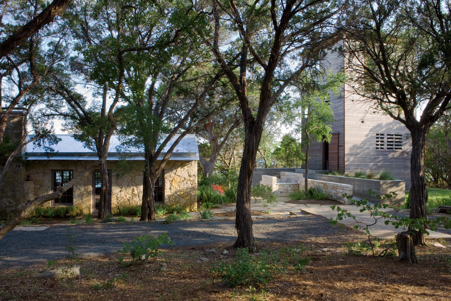 Nas margens do Lago Travis em Austin (Texas) ergue-se a idílica Tower House, projetada por Andersson-Wise Architects. A casa destaca-se fortemente das suas congéneres, por ser alta e não ter paredes de pedra mas forrada a madeira. Por causa disso, ele apenas se mistura com o ambiente. Foi construído com o objetivo de agregar um espaço de convivência a uma das cabanas mencionadas. E cresceu um prédio de três andares, cuja "fachada" de madeira complementa lindamente as pedras ao redor e apenas implora para você subir ao topo e admirar a vista do lago.