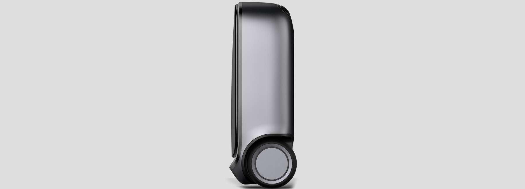 Prav z njeno pomočjo kovček ves čas premikanja ohranja ravnotežje. Puppy 1 ima vgrajen lasca, prek katerega vam lahko samodejno sledi. Z controle remoto ga boste lahko celo ‘priklicali’ k sebi.