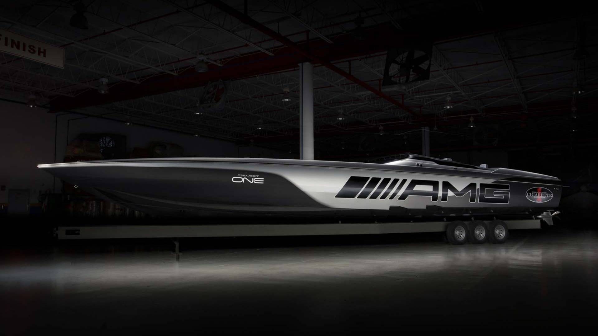 515 Project One nima s superšportnim Mercedesom nič skupnega, razen imena AMG. Niti AMG-jev motor ga ne poganja. Za pogon skrbita 8-valjna motorja Mercury Racing, vsak s po 1.350 konjskimi močmi. Če boste v tank za gorivo natočili mešanico visokooktanskega bencina, se bo moč vsakega dvignila na ogromnih 1.550 konjskih moči. Skupna moč Cigarette je tako 3.100 konjskih moči, česar se ne bi sramoval prav noben gliser. A se pri 515 Project One vse skupaj le ne vrti samo okoli motorjev. Gliser je v celoti narejen iz fibra de carbono e kevlarja, kar pripomore k izredno majhni teži kljub njegovi dolžini. Ima dovolj prostora za 6 potnikov, pri Cigarette Racing pa pravijo, da je to njihov najnaprednejši gliser, ki so ga kadarkoli naredili.