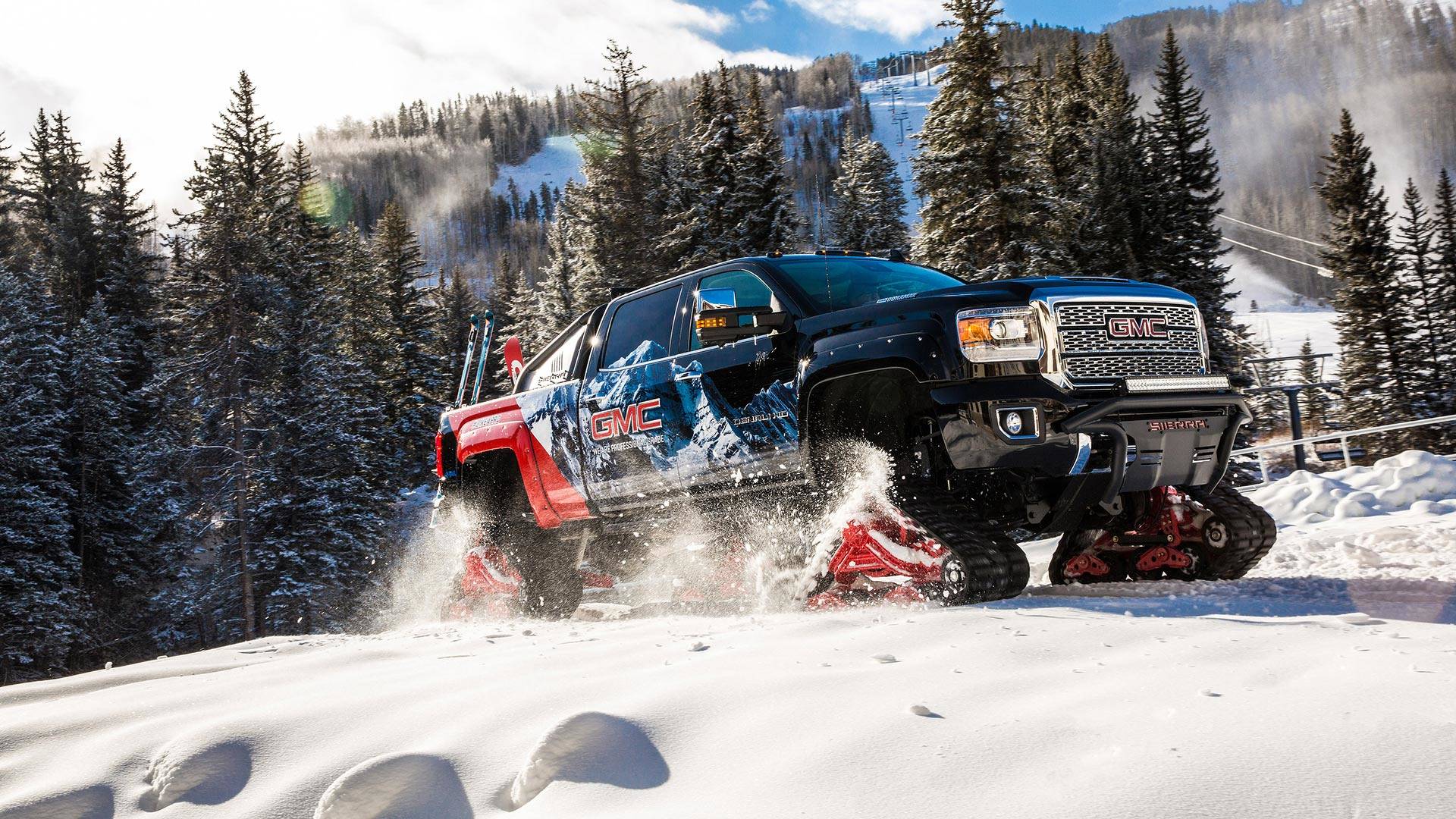 Se você tem medo de ficar preso na neve, a GMC tem a solução para você. O GMC Sierra 2500HD All Mountain Concept foi equipado com pistas que podem lidar com terrenos com muita neve.