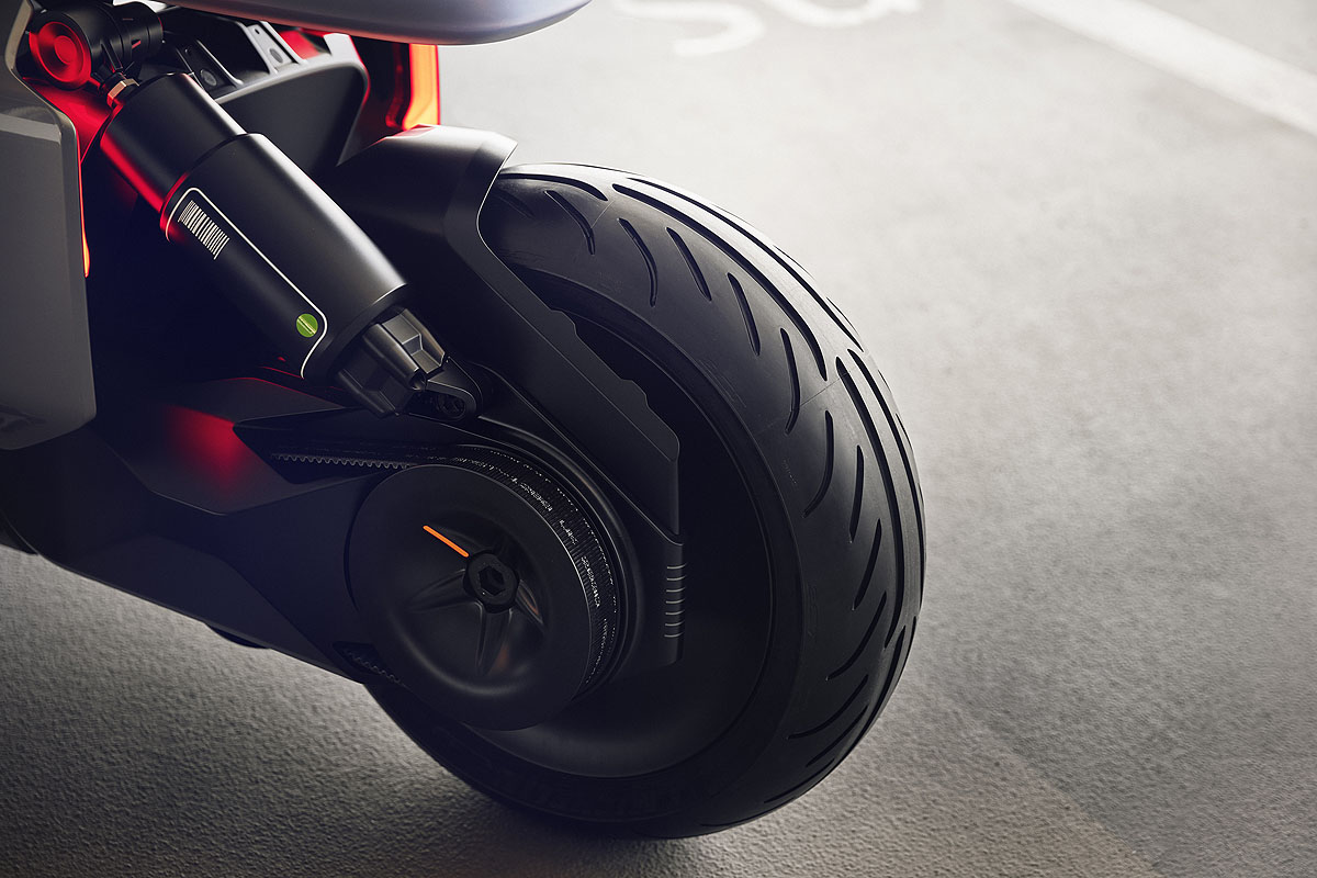 Com o chamado jaqueta inteligente elas vão pego no primeiro toque, já que o motociclista usará um gesto para abrir e fechar o porta-malas, que a motocicleta terá onde seu coração de combustão interna descansou até agora. Motor elétrico é recém-instalado na roda traseira, e as baterias encontraram seu lugar na parte inferior da motocicleta. Este último ajudou a criar a forma que é baixo e dívida, o que torna muito fácil sentar na motocicleta. Os contadores clássicos se despediram, substituídos por dados sobre velocidade, navegação e status da bateria projetado no para-brisa, e todos os outros controles podem ser encontrados no volante e operados com eles ao tocar. Link do conceito ele também pode se conectar ao seu calendário e escolher a melhor rota para sua próxima tarefa de acordo. Mas para chegar lá tranquilo e relaxado, ele vai escolher automaticamente uma música de fundo adequada para você.
