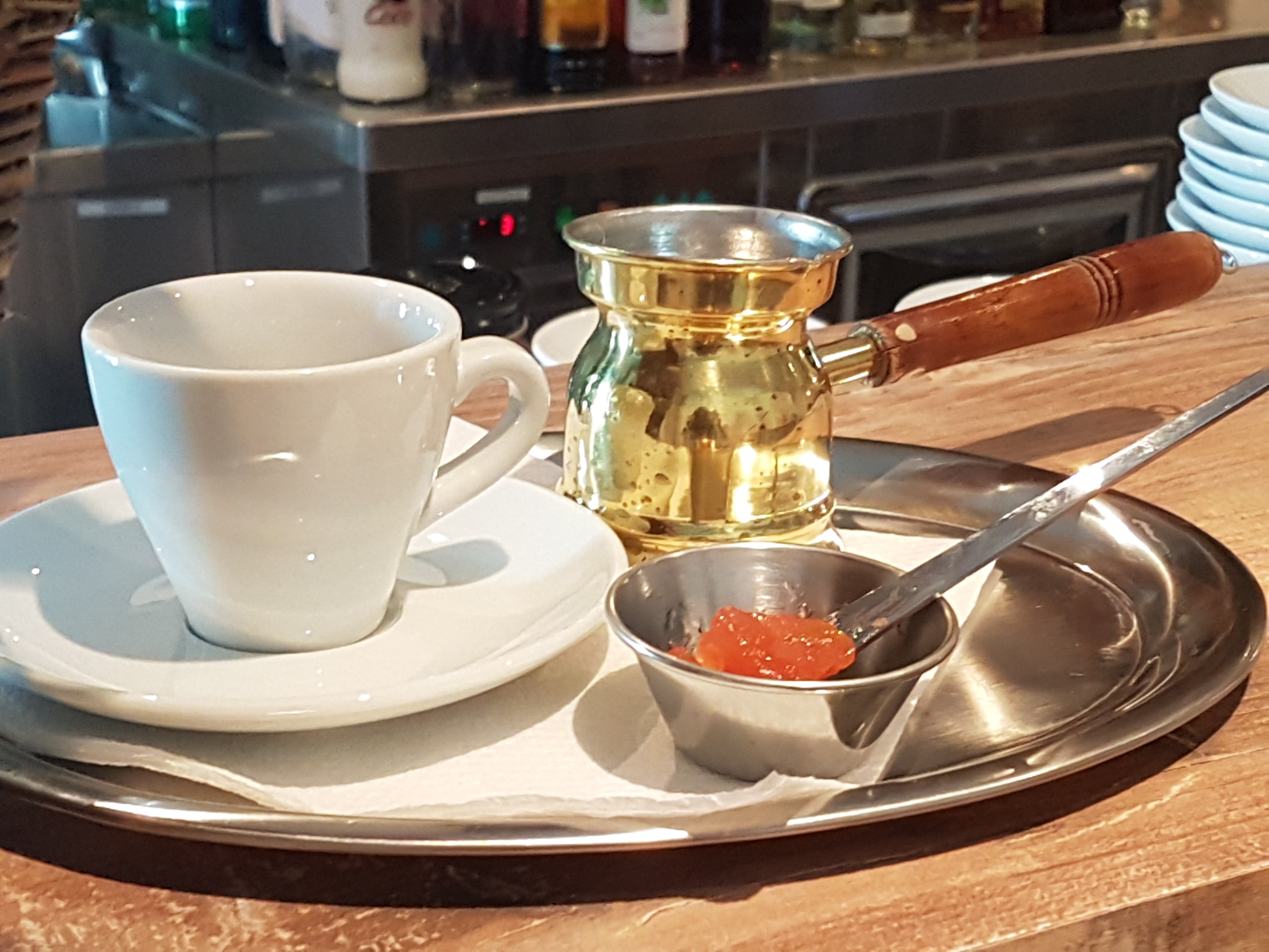 Pode adoçar-se com figos quentes com calda de vinho tinto e burek doce com natas (galaktoburek). No café, eles servem você s Franck café e especialidades gregas de café, como capuccino frio, expresso frio ou Nescafé Frappé.