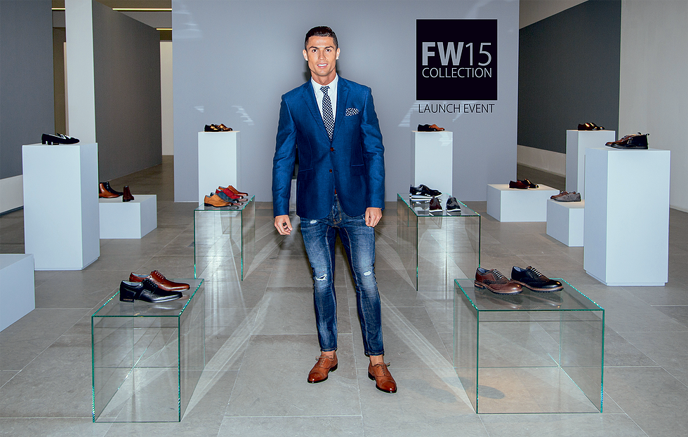 Cristiano Ronaldo está sob o rótulo FW15 lançou uma nova coleção de sapatos masculinos elegantes para outono e inverno 2015/16, que se enquadram em sua marca registrada CR7. Ele teve a oportunidade de caminhar com eles novamente passarelas de moda, onde se sente quase tão à vontade quanto no gramado, e os bastidores dos desfiles lhe são tão familiares quanto o camarim.
