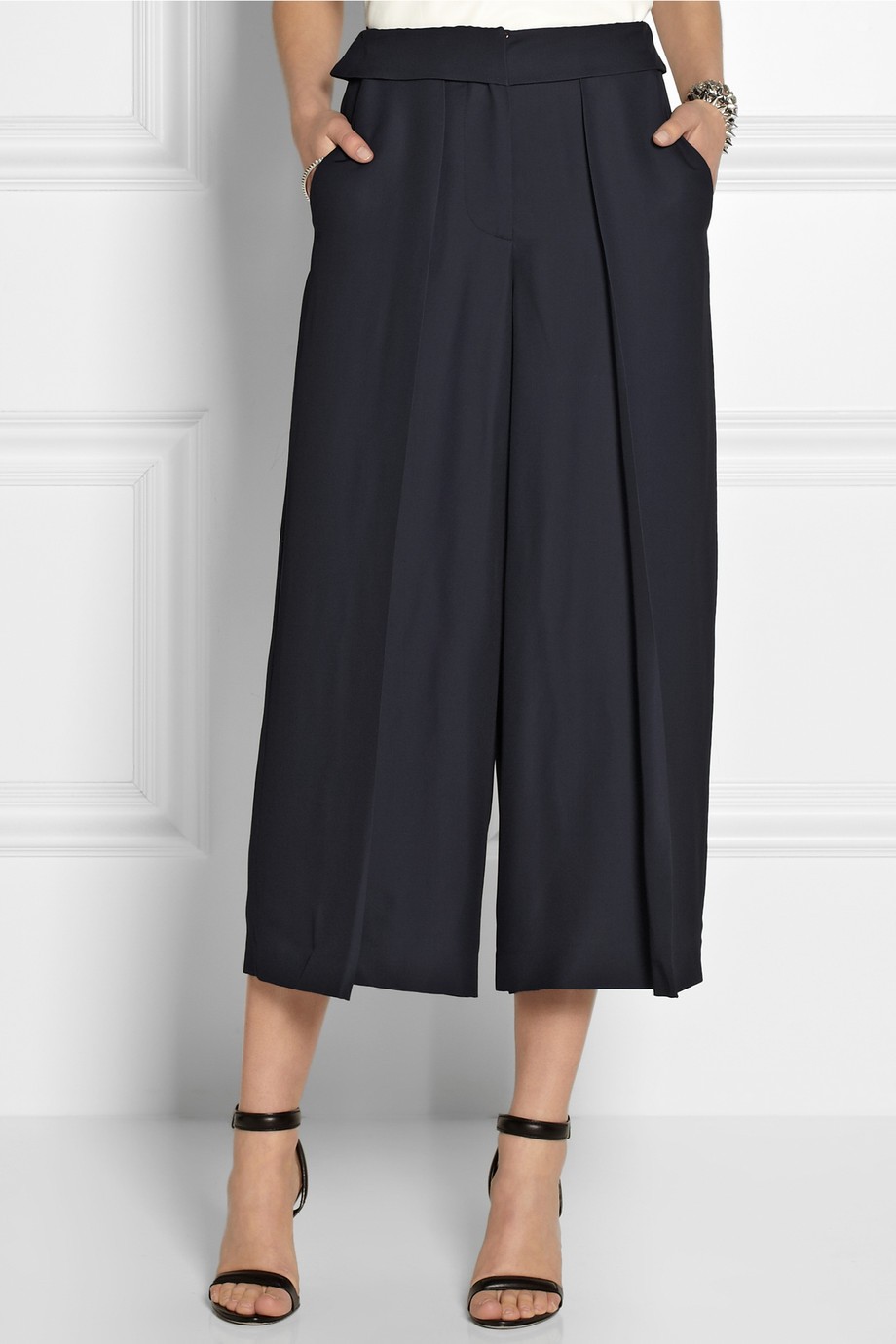 Os criadores globais das últimas semanas de moda brincaram novamente com calças largas, que muitas vezes beiram a aparência de asas. V comprimentos curtos ou médios, preto clássico ou jeans e padrões animados será neste verão culotes tornaram-se um item de moda indispensável. Para andanças urbanas, podem ser combinados com um top descontraído e sandálias baixas, enquanto para um look mais sofisticado, ficam perfeitos em combinação com um blazer justo e salto alto.