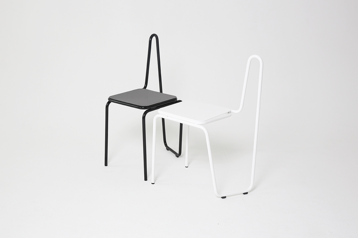 Stol, ki od strani deluje kot stol s funkcionalnim naslonjalom, je v resnici le sedež brez naslonjala, saj ob njegovi rotaciji takoj opazimo, da gre za dizajnersko igro oziroma nekonvencionalno obliko, katere namen je pripovedovati novo oblikovalsko zgodbo.