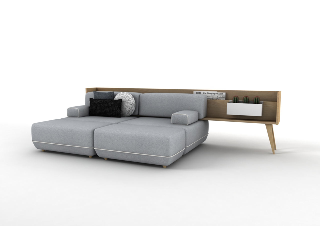 No estúdio de design espanhol Vitale Studio, criaram uma maravilhosa coleção de móveis Two be, na qual combinaram vários modelos de sofás com lindos móveis de madeira em forma de mesas, estantes e armários.