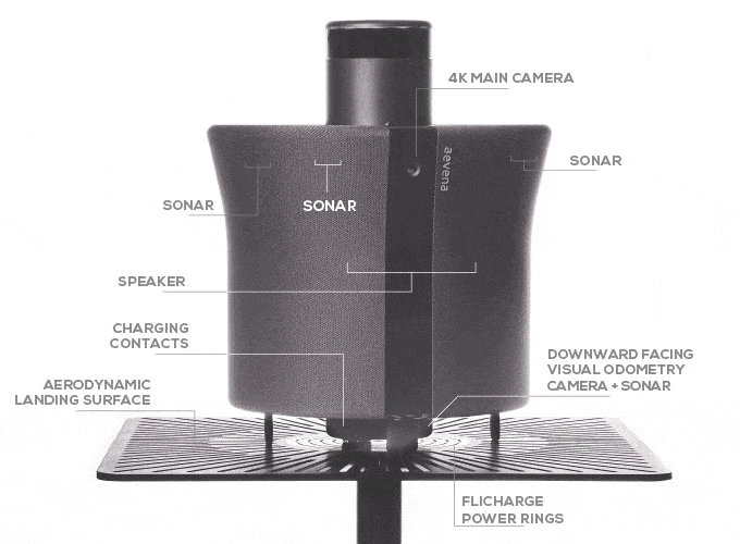 O drone foi instalado microfone e alto-falante e claro também Câmera com resolução 4K e tecnologia 3D.. Amazon Alexa irá te permitir com comandos de voz instruir o drone a tira sua foto debaixo do teto da sala de estar. Outra vantagem do drone Aire é que, comparado a outros "parentes", ele é bastante silencioso. Aire está equipado com sensores, que o ajudam a evitar objetos no apartamento, e câmera na parte inferior para facilitar o posicionamento. O drone também fornecerá maior segurançaPorque mesmo quando estiver longe de casa, você estará sempre em contato com o que está acontecendo através do seu smartphone e da câmera do drone. O Aevena Aire é alimentado pelo chip Nvidia TX1., produzido pela mesma empresa. Aire pousará em sua estação, onde estará em carregou a bateria em menos de 30 minutosEle fará amizade com iOS como com andróidesE a conexão será possível via Wi-Fi ou Bluetooth. Você também está curioso para saber a velocidade de voo? A expectativa é que ele atinja [velocidade de voo] 1 a 2 metros por segundo, 8 minutos mas deve durar o ano todo.