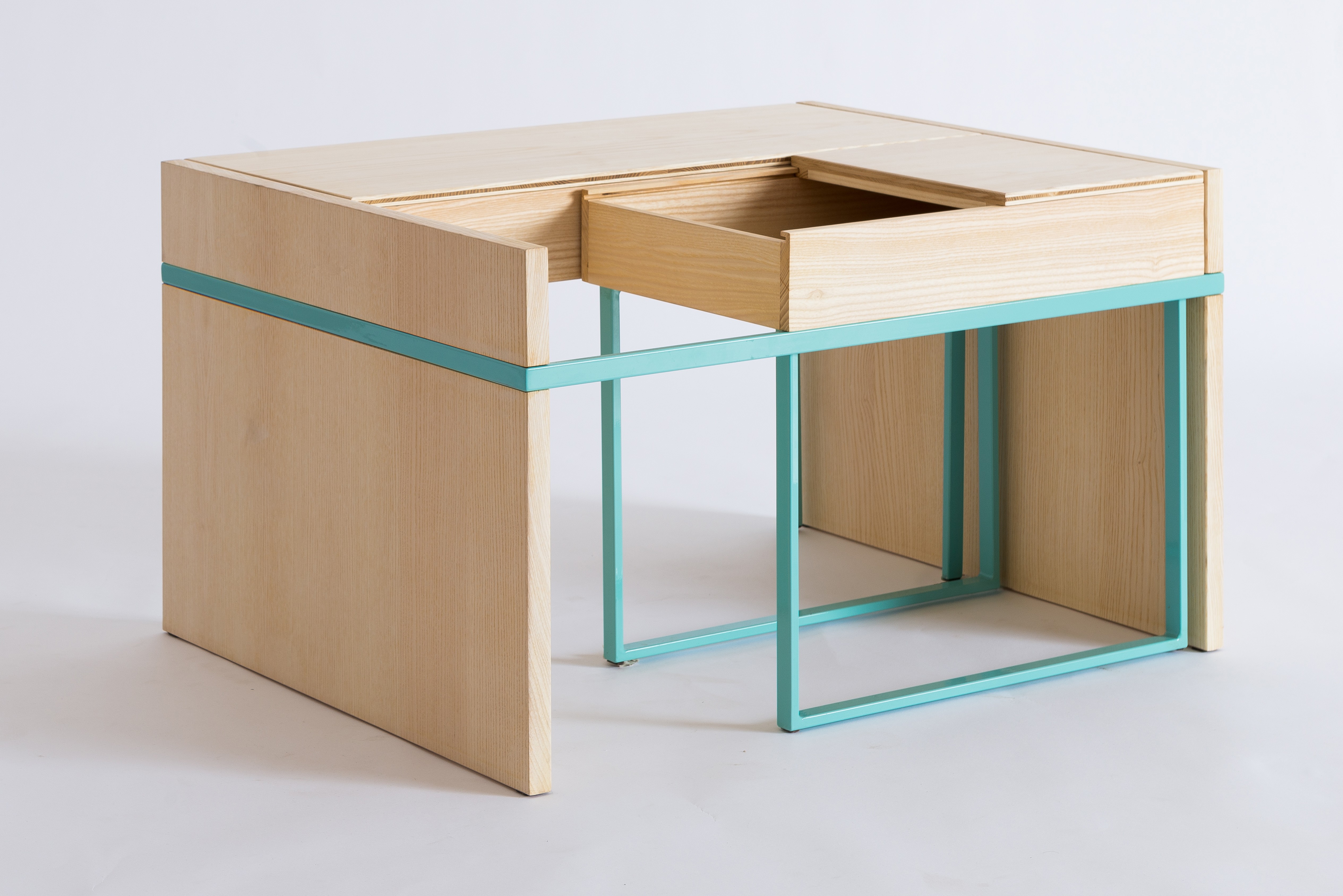 Este foi o primeiro produto que projetamos e fabricamos. Queríamos projetar uma mesa de centro que fosse multifuncional, oferecesse diferentes maneiras de usá-la e fosse, ao mesmo tempo, simples e limpa. Os jovens que se mudam para suas próprias casas geralmente ficam limitados pelo espaço disponível. Queríamos oferecer a eles uma alternativa, um móvel que se integrasse ao apartamento e, ao mesmo tempo, permitisse uma usabilidade excepcional e um bom aproveitamento do espaço. Ele oferece ao usuário pelo menos cinco maneiras diferentes de usá-lo, e o resto fica por conta da imaginação de cada um.