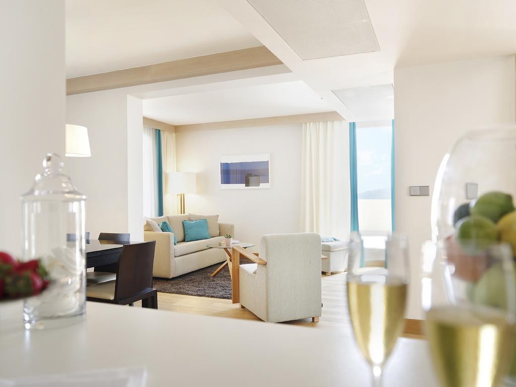 Os quartos e suites do hotel, mobilados de forma moderna, incluem uma casa de banho privativa e uma varanda, enquanto os espaçosos apartamentos também têm uma kitchenette totalmente equipada, uma sala de jantar, uma área de estar e uma varanda ou terraço com vista para o mar ou para o jardim.