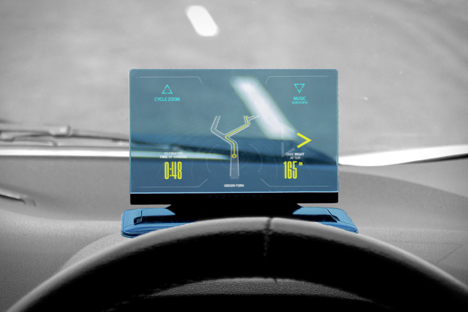Exploride je prenosen tela de projeção, qual lahko uporabite v kateremkoli avtomobilu. Ponuja vam dostop do zemljevidov, glasbe, klicev in drugih vsebin, zavoljo prepoznanja gibov pa ga upravljate kar z gestikulacijami, kar je precej varneje, kot če bi ga morali upravljati s fizičnim dotikom, saj imate tako lahko uči vseskozi na cesti. Exploride je mešanica infotainment naprave, satelitske navigacije in pametnega telefona. Predstavlja vsestranski sistem, ki omogoča, da pozornost posvečate le eni stvari in ne trem hkrati.